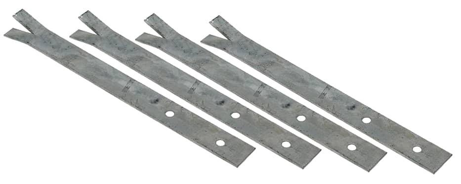 Set de 4 anclajes planos para columpio. Anclajes de acero galvanizado en caliente para la sujeción de juegos infantiles en hormigón. Cada anclaje dispone de dos agujeros de fijación de 8,5mm de diámetro.