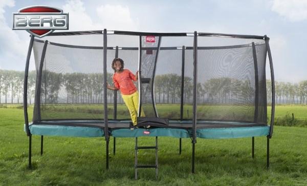 Cama elástica ovalada BERG Grand Champion con red de seguridad Deluxe, una cama elástica muy grande de la mejor calidad con las últimas innovaciones. El sistema de muelles Twinspring de doble muelle en forma de «v» , aumenta el área de salto perfecto y aporta mejor confort en el salto. La lona elástica tiene unos poros más abiertos que dejan fluir el aire con más libertad, es la llamada tela Airflow que junto con los muelles twingsping hacen el mejor salto. La estructura del trampolín está bien protegida para el exterior y tiene un elegante color negro que le da una protección extra. La red de seguridad Deluxe bien integrada en la cama elástica mantiene siempre la red firme. La cama elástica BERG Champion tiene un borde protector muy ancho y grueso.