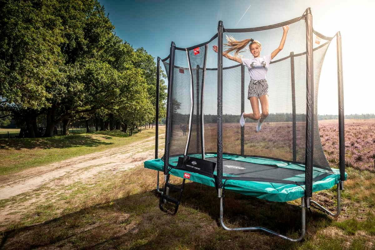 Cama elástica rectangular BERG Ultim Favorit 280 con red de seguridad Comfort, una cama elástica de la mejor calidad con el innovador sistema de muelles Goldspring que le da el mejor salto. La estructura del trampolín está bien protegida para el exterior y tiene un elegante color negro que le da una protección extra. La red de seguridad Comfort bien integrada en la cama elástica mantiene siempre la red firme. La cama elástica BERG Ultim Favorit 280 Green tiene un borde protector muy ancho y grueso.