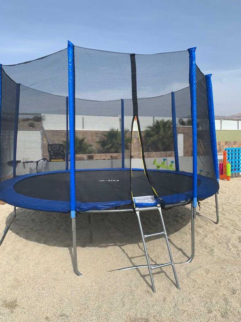 – Cama elástica infantil con zona de salto diámetro 400 centímetros, apto para varios niños a la misma vez.