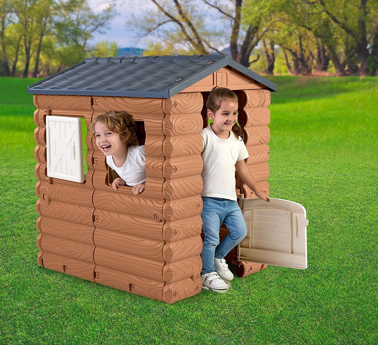 La casita infantil cuenta con 2 ventanas y una puerta abatibles; De montaje rápido y fácil
