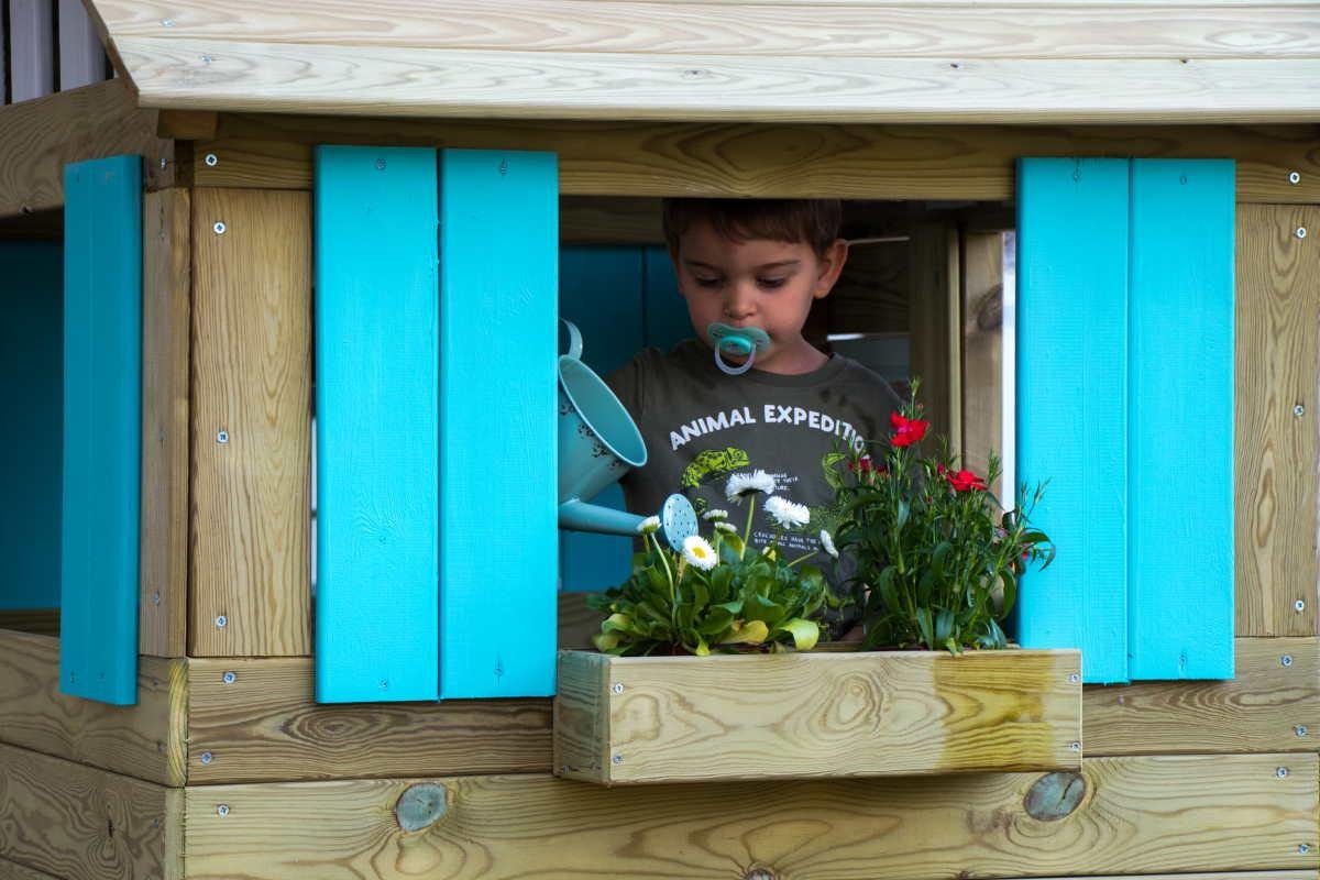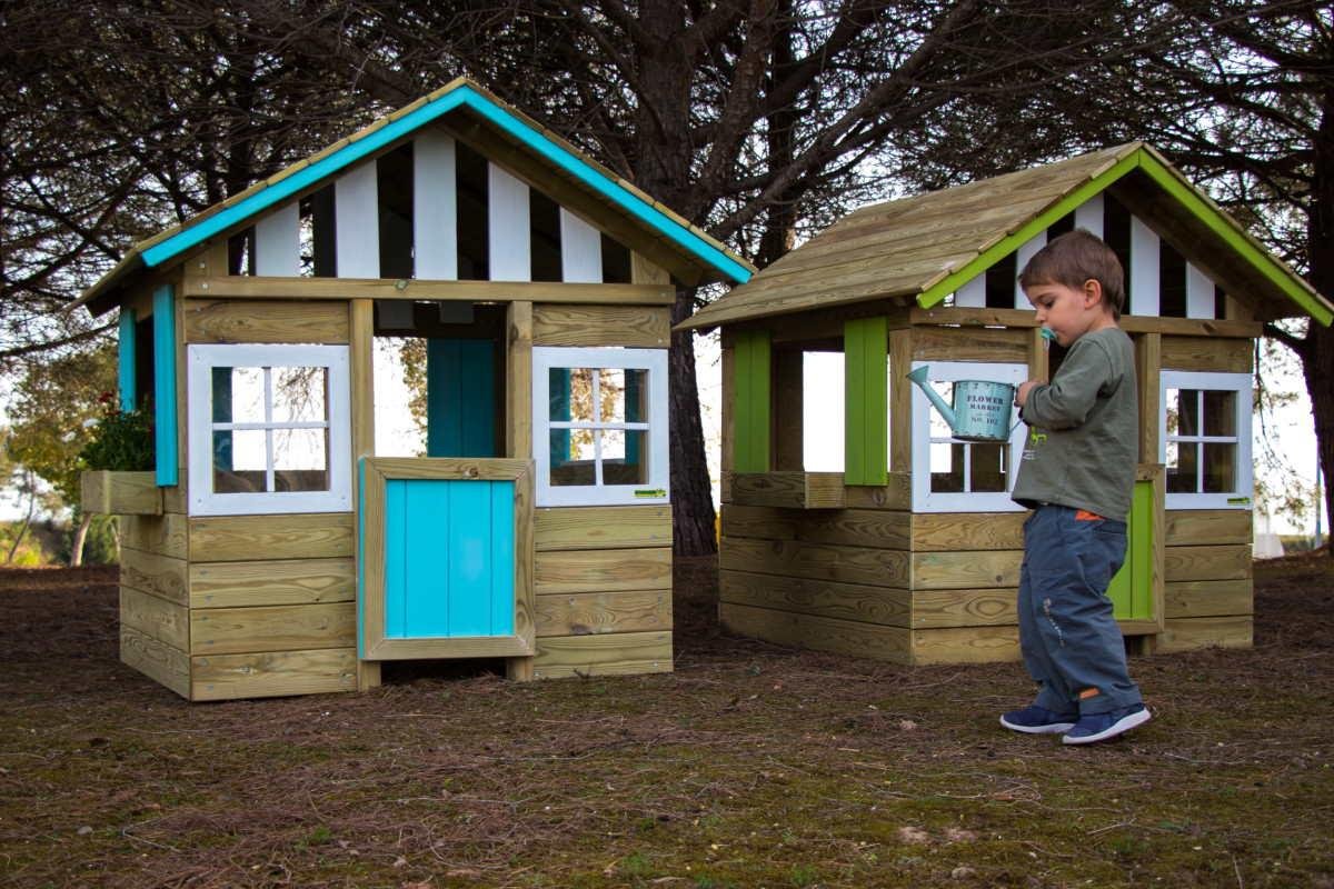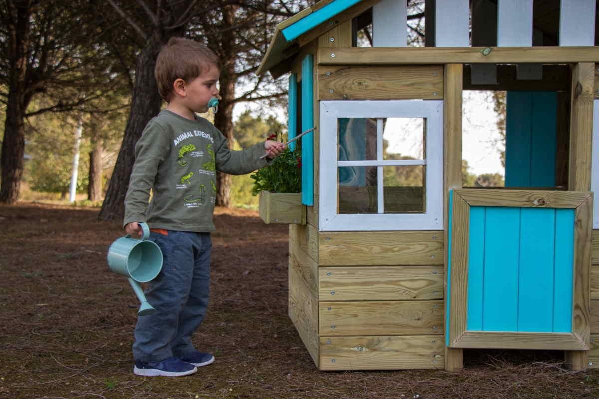 La casita de madera MASGAMES LOLLIPOP AZUL es una casita infantil muy bonita con puerta, ventanas frontales de polietileno, ventana lateral con alféizar, la otra ventana con macetero y en la parte posterior ventana sin nada. Una casita abierta para que puedan vigilar los niños cuando estén dentro. La casita MASGAMES Lollipop se vende en tres opciones de color diferentes: verde, azul y rosa. ¿Cuál te gusta más a ti?