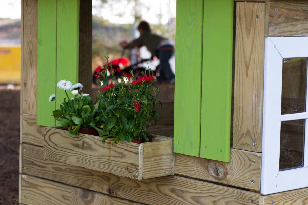 La casita de madera MASGAMES LOLLIPOP VERDE es una casita infantil muy bonita con puerta, ventanas frontales de polietileno, ventana lateral con alféizar, la otra ventana con macetero y en la parte posterior ventana sin nada. Una casita abierta para que puedan vigilar los niños cuando estén dentro. La casita MASGAMES Lollipop se vende en tres opciones de color diferentes: verde, azul y rosa. ¿Cuál te gusta más a ti?