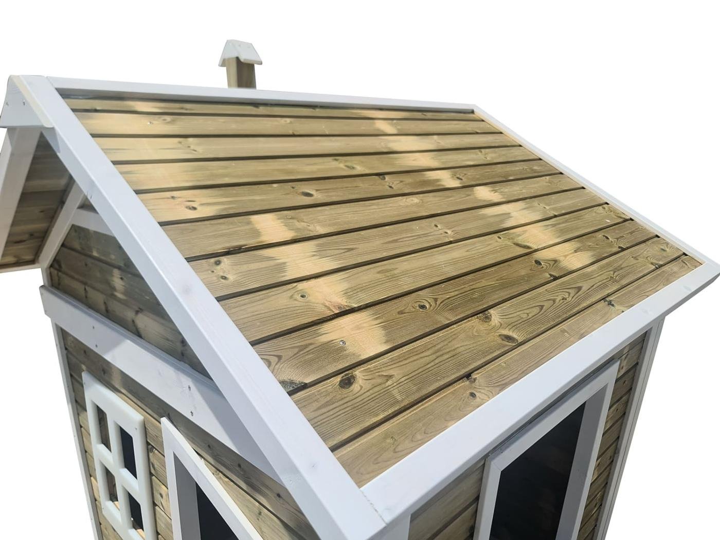 Madera Tratada para el Exterior: Utilizamos madera tratada en autoclave nivel IV, lo que permite que la casita sea colocada al aire libre, resistiendo tanto el sol como la lluvia. Los tratamientos inferiores, como el nivel III, solo son adecuados para ubicaciones protegidas.