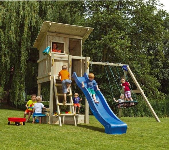 Los parques infantiles de la marca Blue Rabbit están homologados para el jardín de una casa particular.