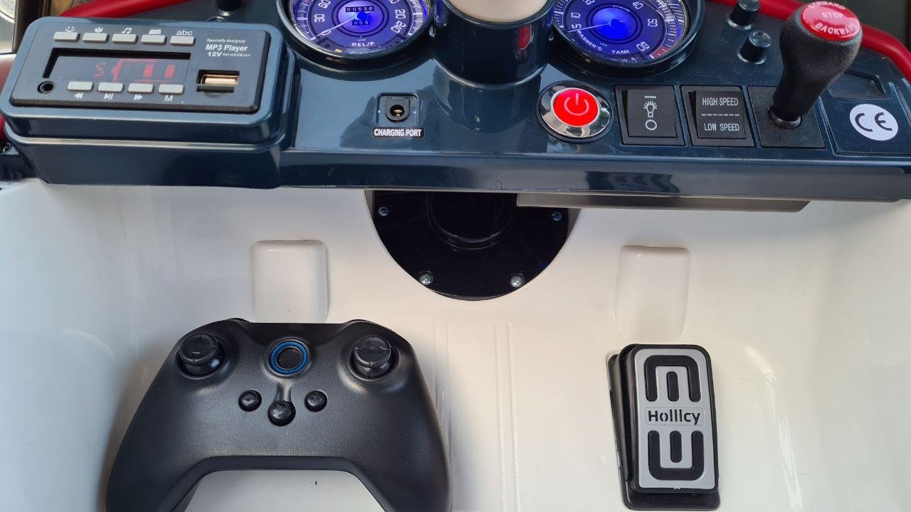 Funciona con el pedal del acelerador o con el control remoto incluido para los padres.