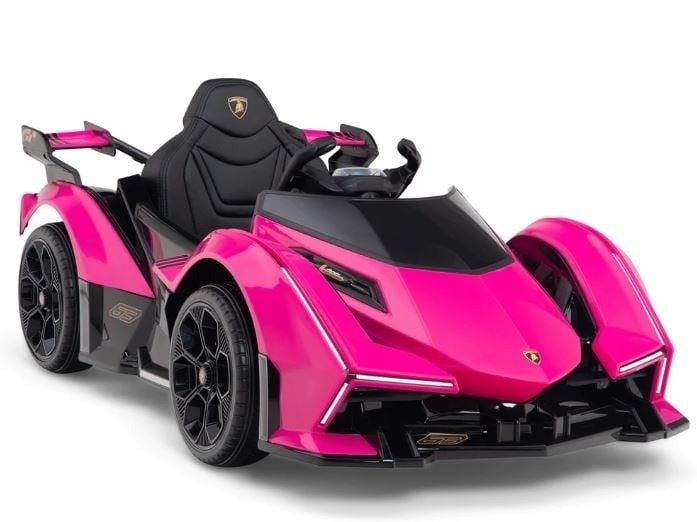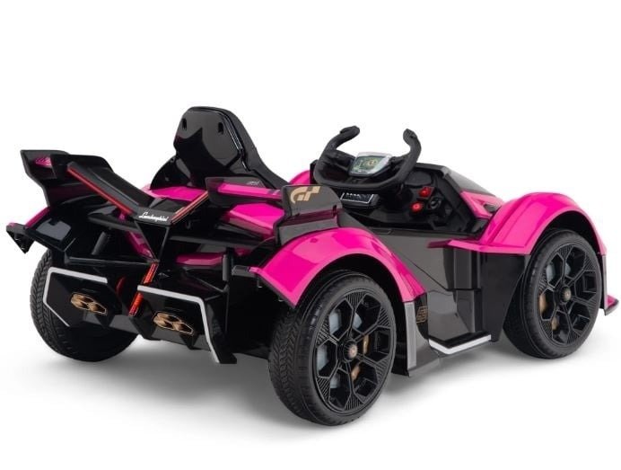 Este deportivo Lamborghini Vision 12V para niños en color rosa es la mejor experiencia para los niños. El Lamborghini SJV se fabrica bajo licencia de Lamborghini. El coche infantil en color rosa es adecuado para niños de entre 1 y 5 años.