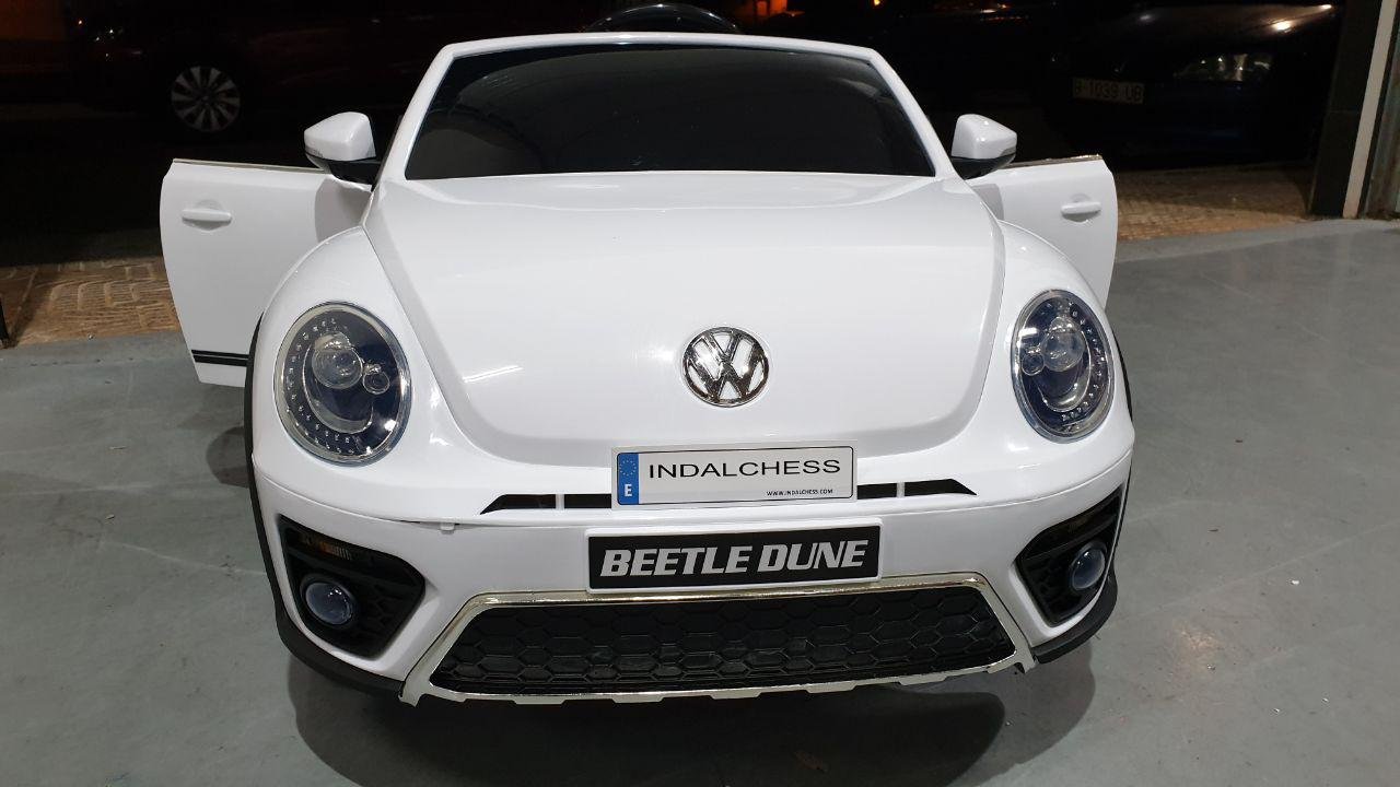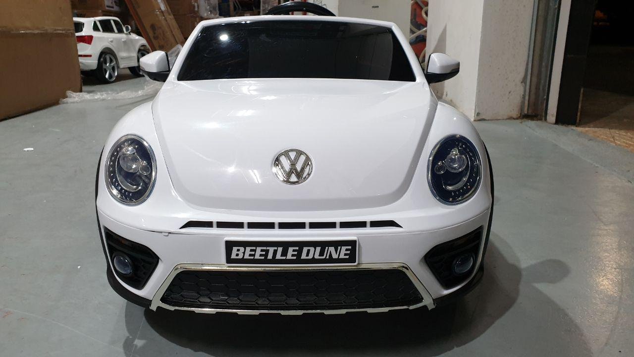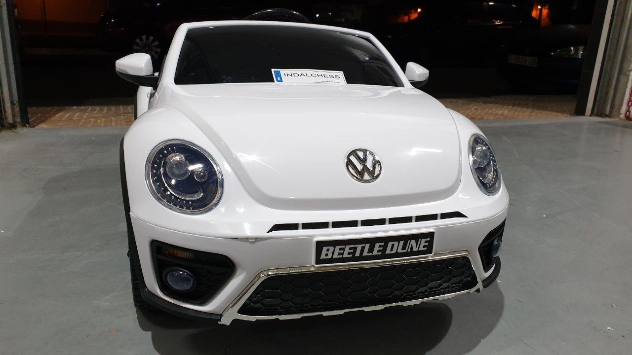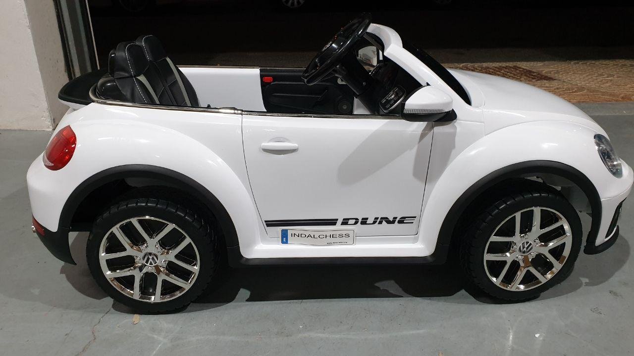 Este gran auto para niños Volkswagen Beetle se fabrica bajo la licencia de Volkswagen. Con los 2 potentes motores de 12 voltios, el vehículo infantil Beetle alcanza una velocidad de hasta 6 km por hora. Además, este vehículo con batería está equipado con muchas opciones, tales como: 2 puertas reales, neumáticos totalmente de goma, asiento de cuero artificial, ruedas de suspensión, iluminación LED, bocina, música y radio FM. Los niños pueden tocar su propia música si es necesario. La conexión Bluetooth incorporada, mini SD y / o conexión USB.