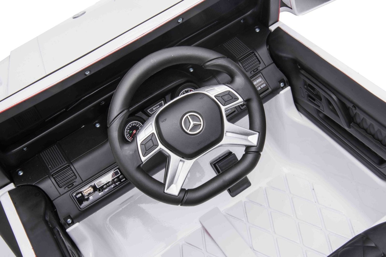 Coche eléctrico niños 12v g63 , 6 ruedas, RC, 1-5 años, blanco, asiento plástico, ruedas plástico INDA689-BN