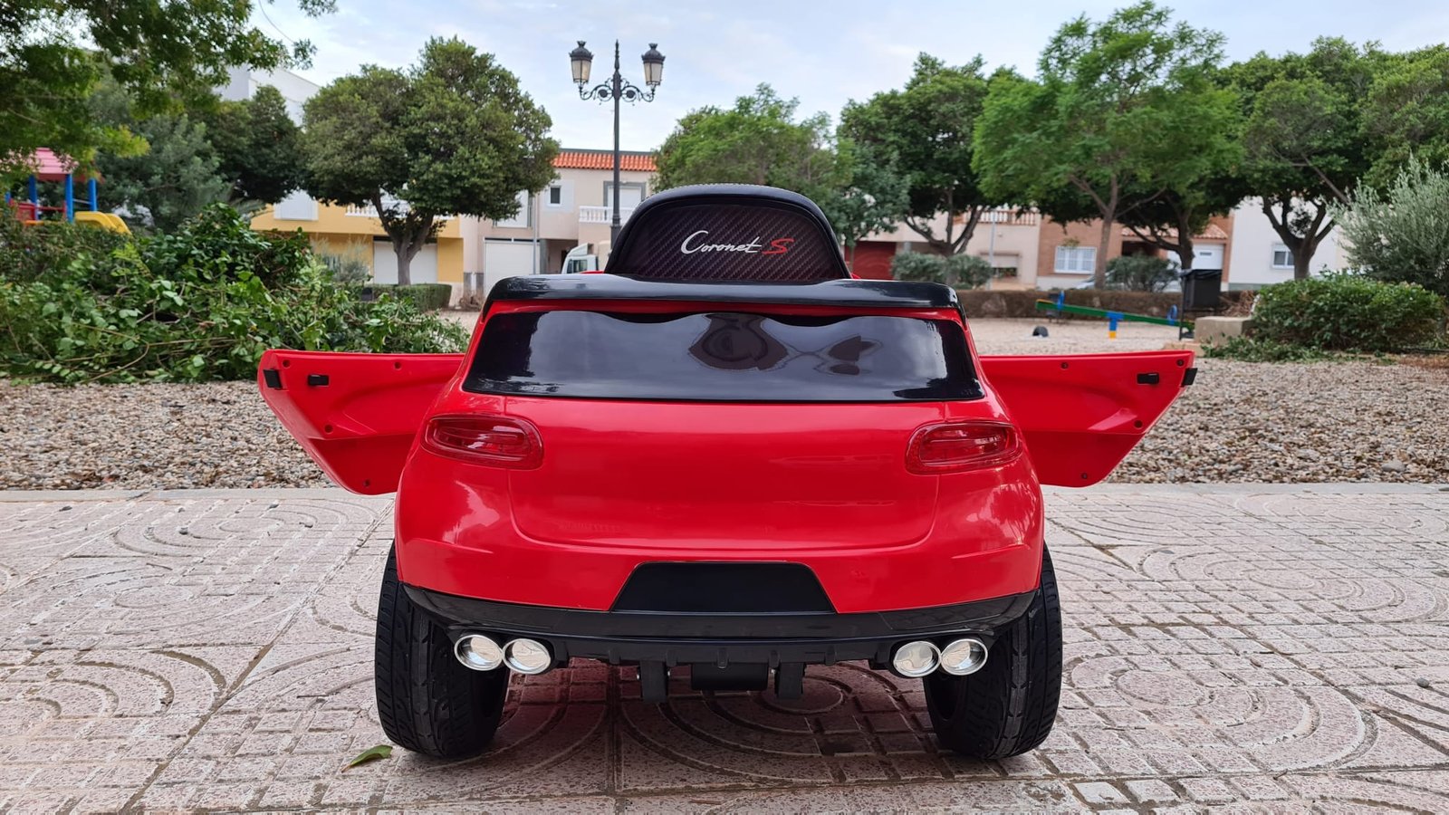 Dimensiones de estos modelos de coches eléctricos para niños: 105 cm de largo, 58 cm. de ancho X 51 cm de altura
