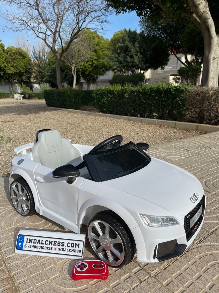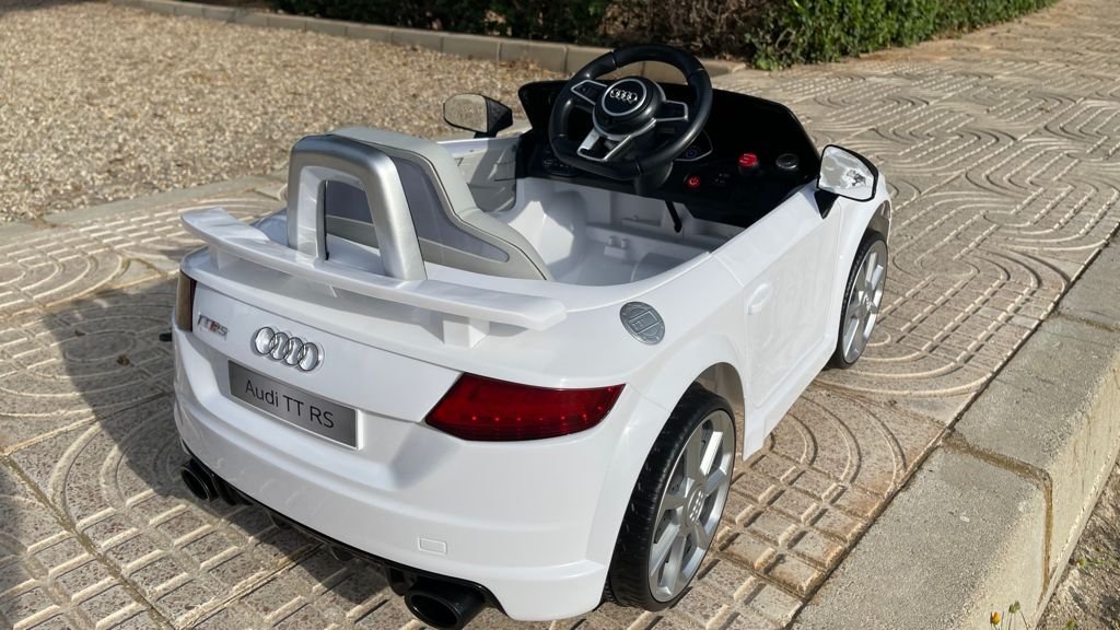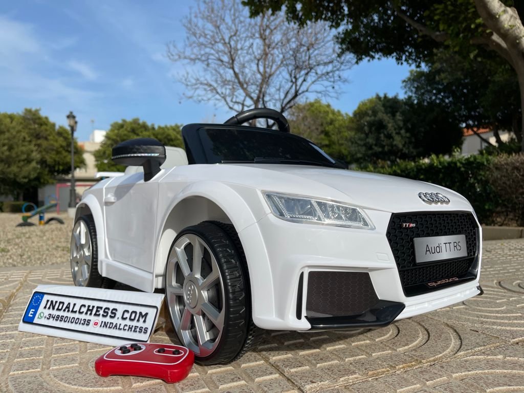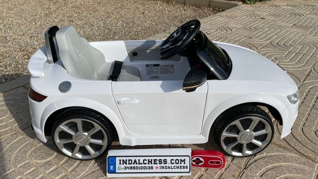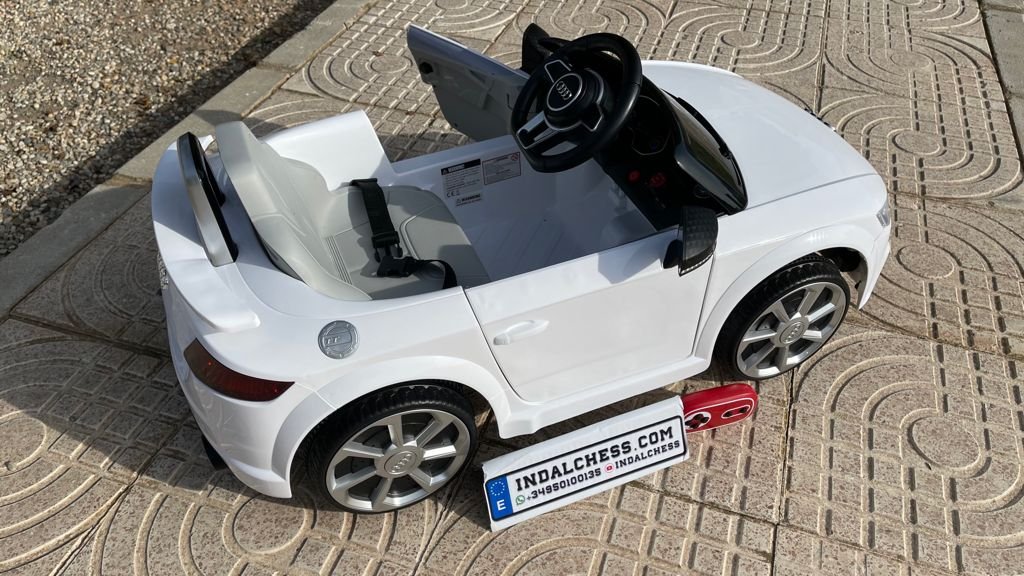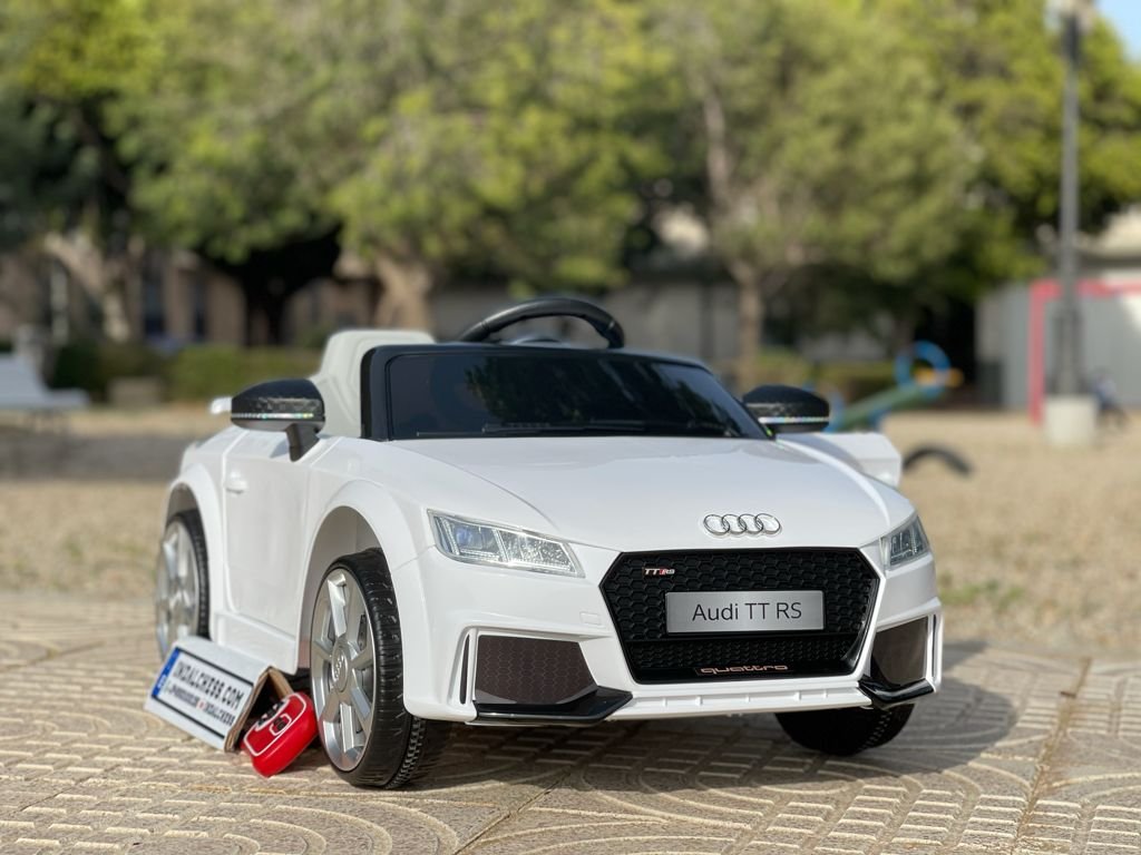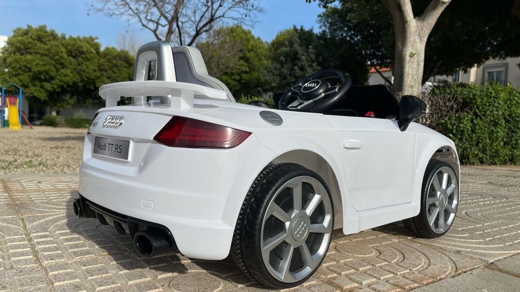VENTA AUDI TTRS 12V INFANTIL, BLANCO, ASIENTO Y RUEDAS DE PLÁSTICO – ATAUDITTRSWHITE
