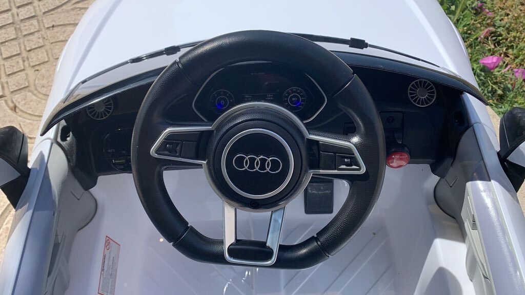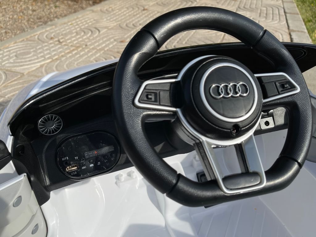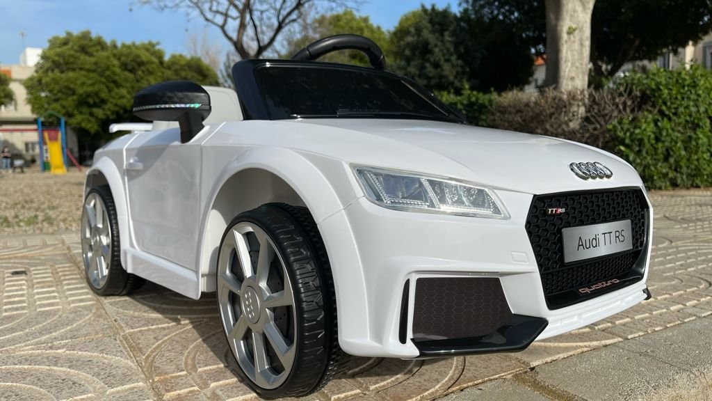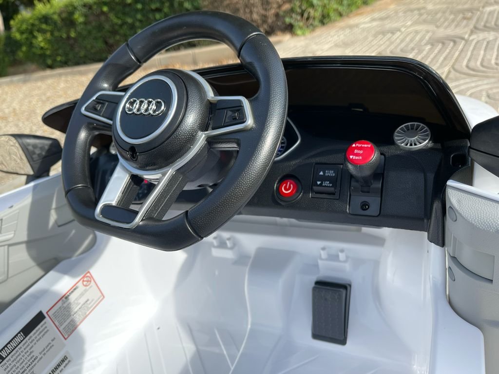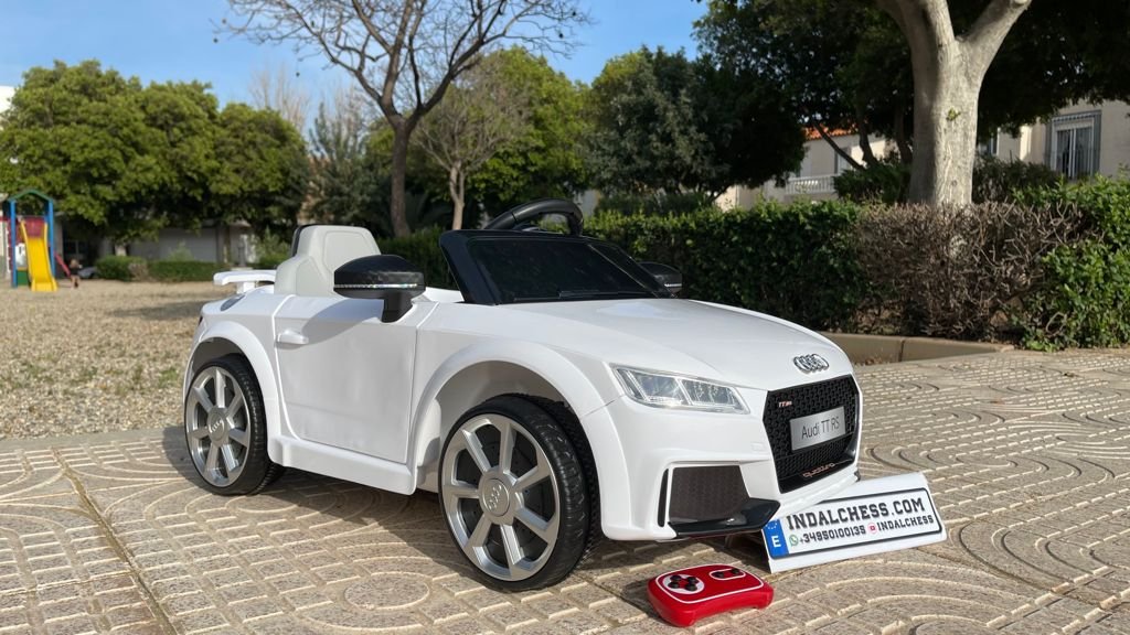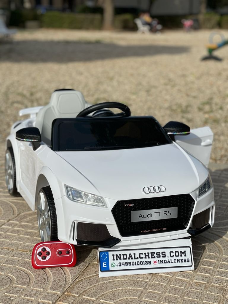 VENTA AUDI TTRS 12V INFANTIL, BLANCO, ASIENTO Y RUEDAS DE PLÁSTICO – ATAUDITTRSWHITE