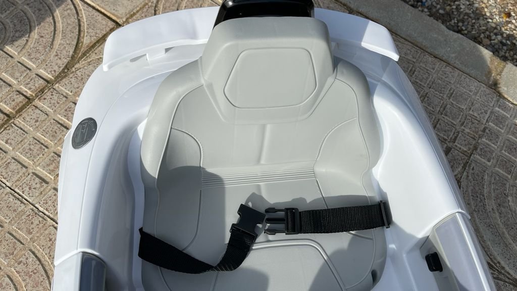 -Control remoto 2.4G  – El coche puede usarse de forma manual con los controles internos del coche, usando el pedal, el botón de las marcha (hacia delante/atrás) y el volante, si lo desea, también puede usarse mediante el control remoto parental.
