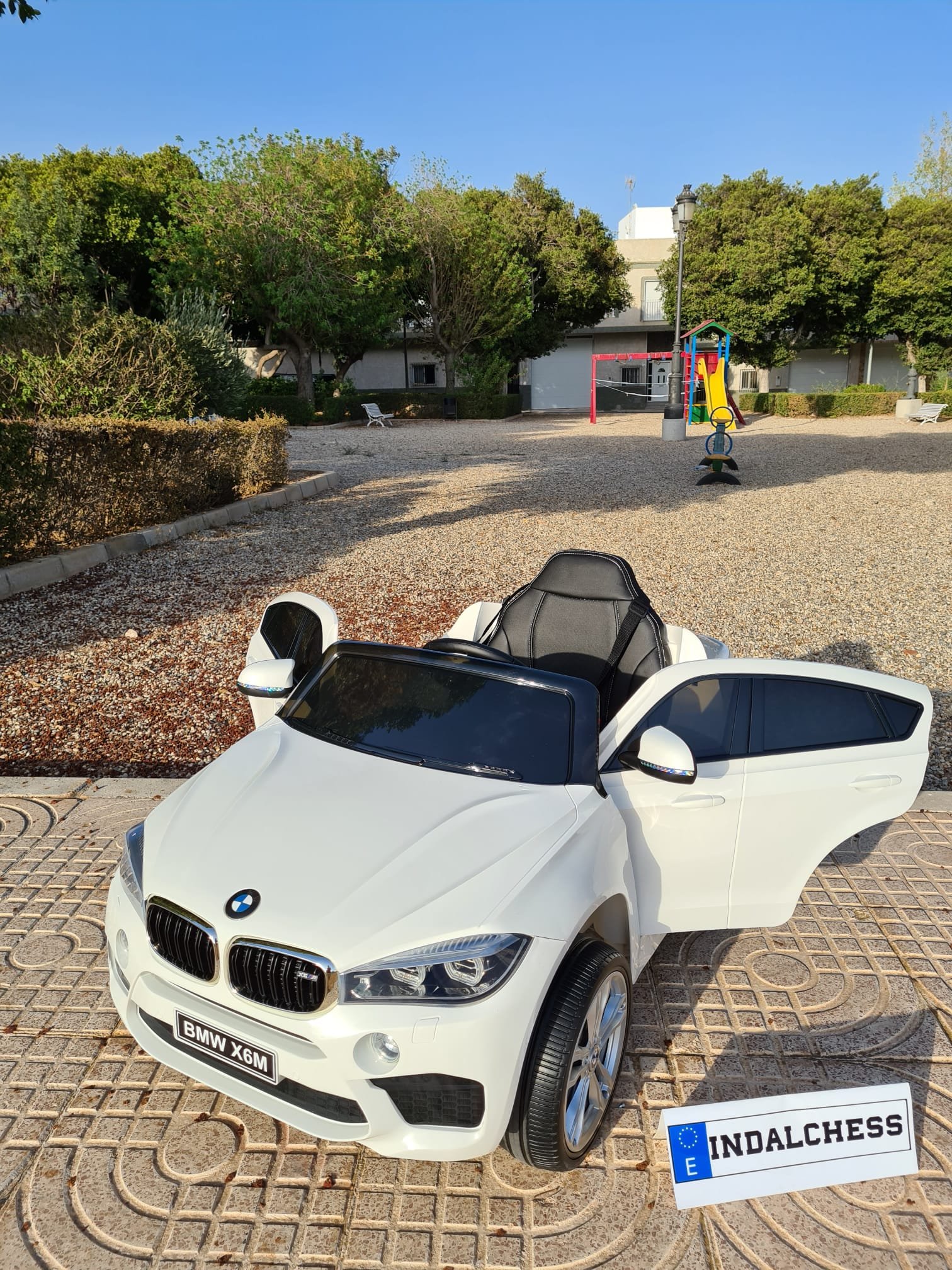 VENTA Coche electrico para niños BMW X6M 12v, color blanco de una plaza INDA157-X6MWT1PL