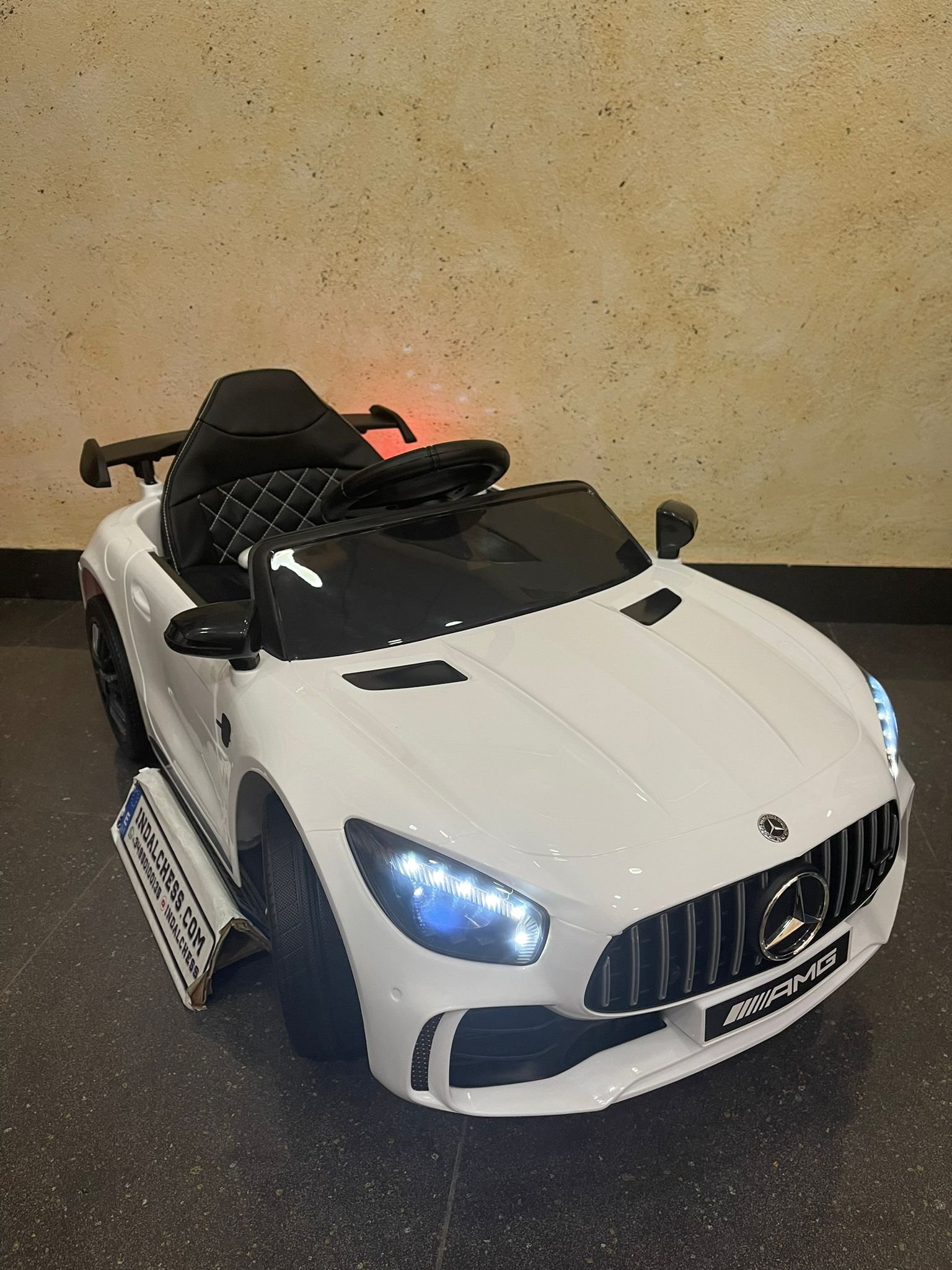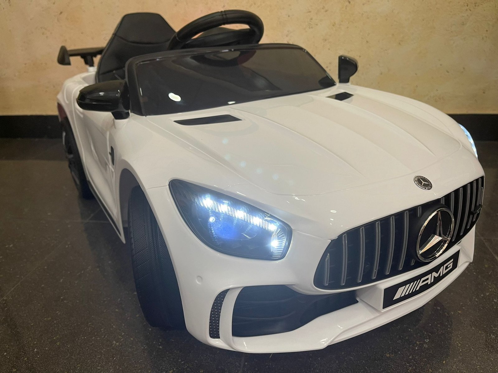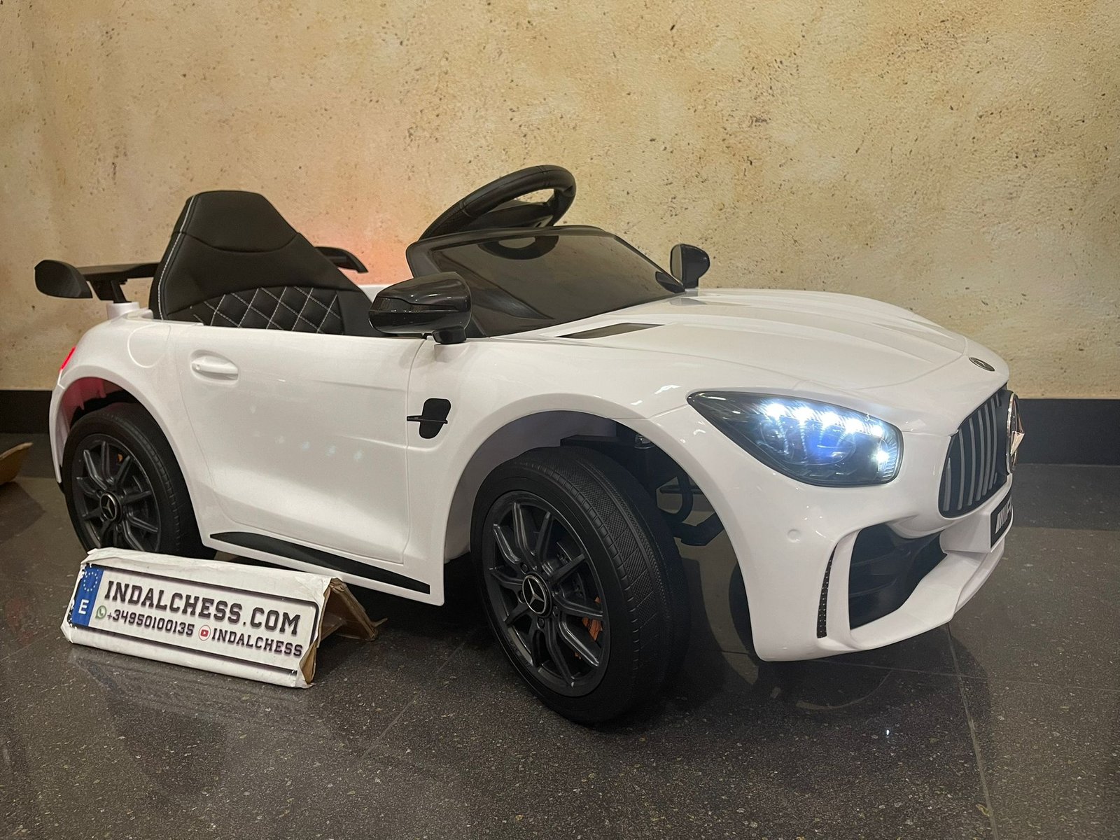VENTA COCHE ELECTRICO PARA NIÑOS MERCEDES BENZ GTR BLANCO, 2X12V. INDA208-LEG6951253