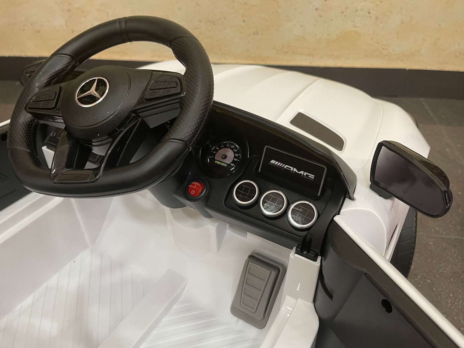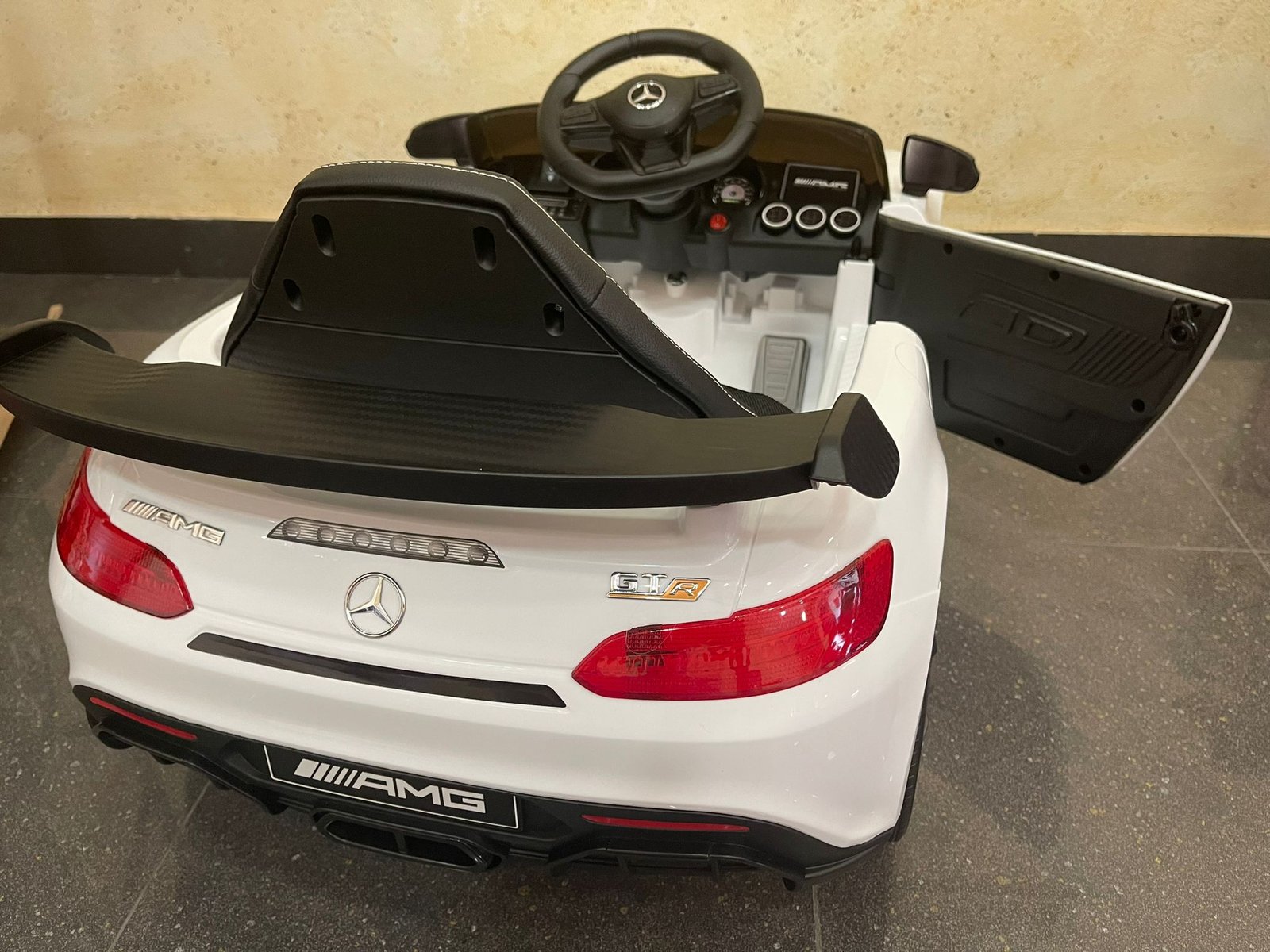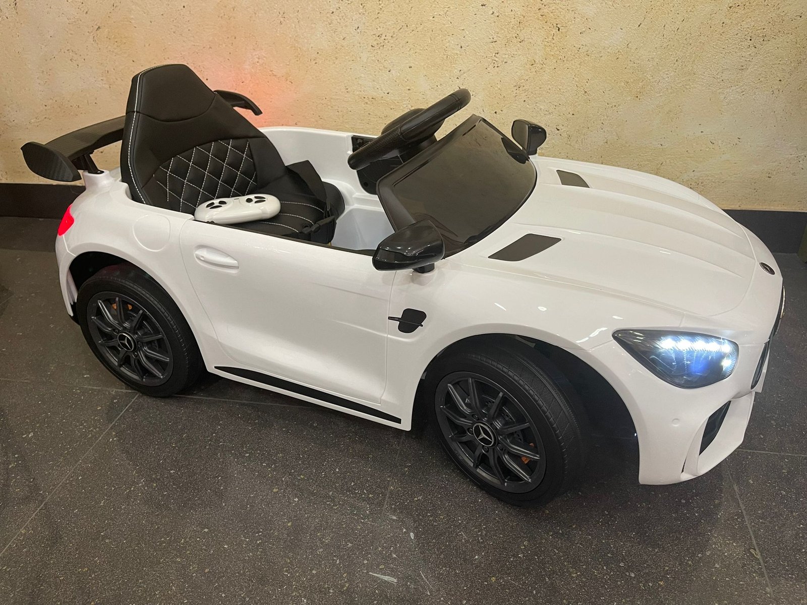 VENTA COCHE ELECTRICO PARA NIÑOS MERCEDES BENZ GTR BLANCO, 2X12V. INDA208-LEG6951253