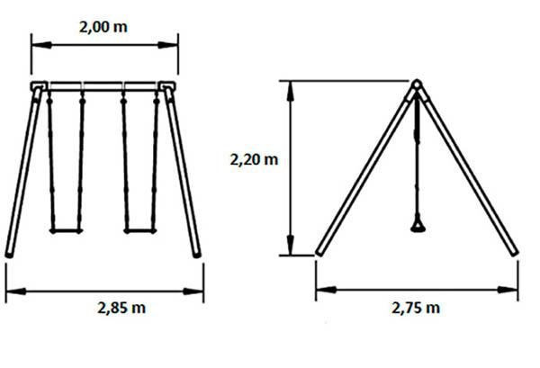 – 2 asientos de plástico y cuerdas, Las medidas del columpio KIBO son las siguientes: