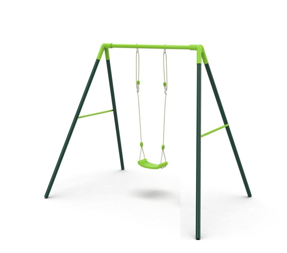 Columpio metálico de una plaza MASGAMES BABOL. Un columpio con estructura de metal galvanizado para exterior y pintado con tonos verdes para adaptarse mejor en el jardín.