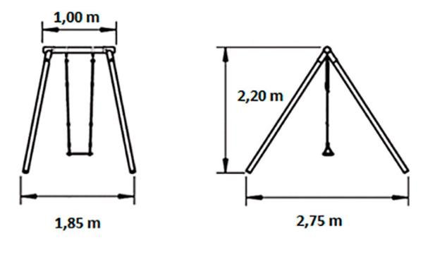 Medidas del columpio KELUT: 1,73 m (largo) x 1,94 m (ancho) x 2,21 m (alto)