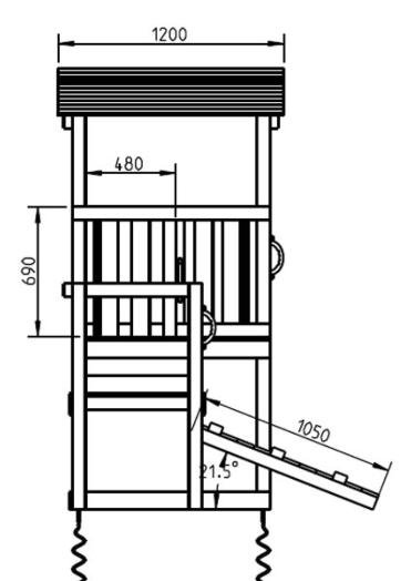 El parque infantil Mini Cascade con columpio doble tiene dos plataformas de conexión, se sube a la primera plataforma por una rampa inclinada, el acceso es fácil para cualquier edad. Esta torre infantil está a una altura de 0,90 m del suelo a la plataforma. El parque infantil Mini Cascade con columpios tiene una estructura lateral con dos asientos de plástico y cuerdas para columpiarse.
