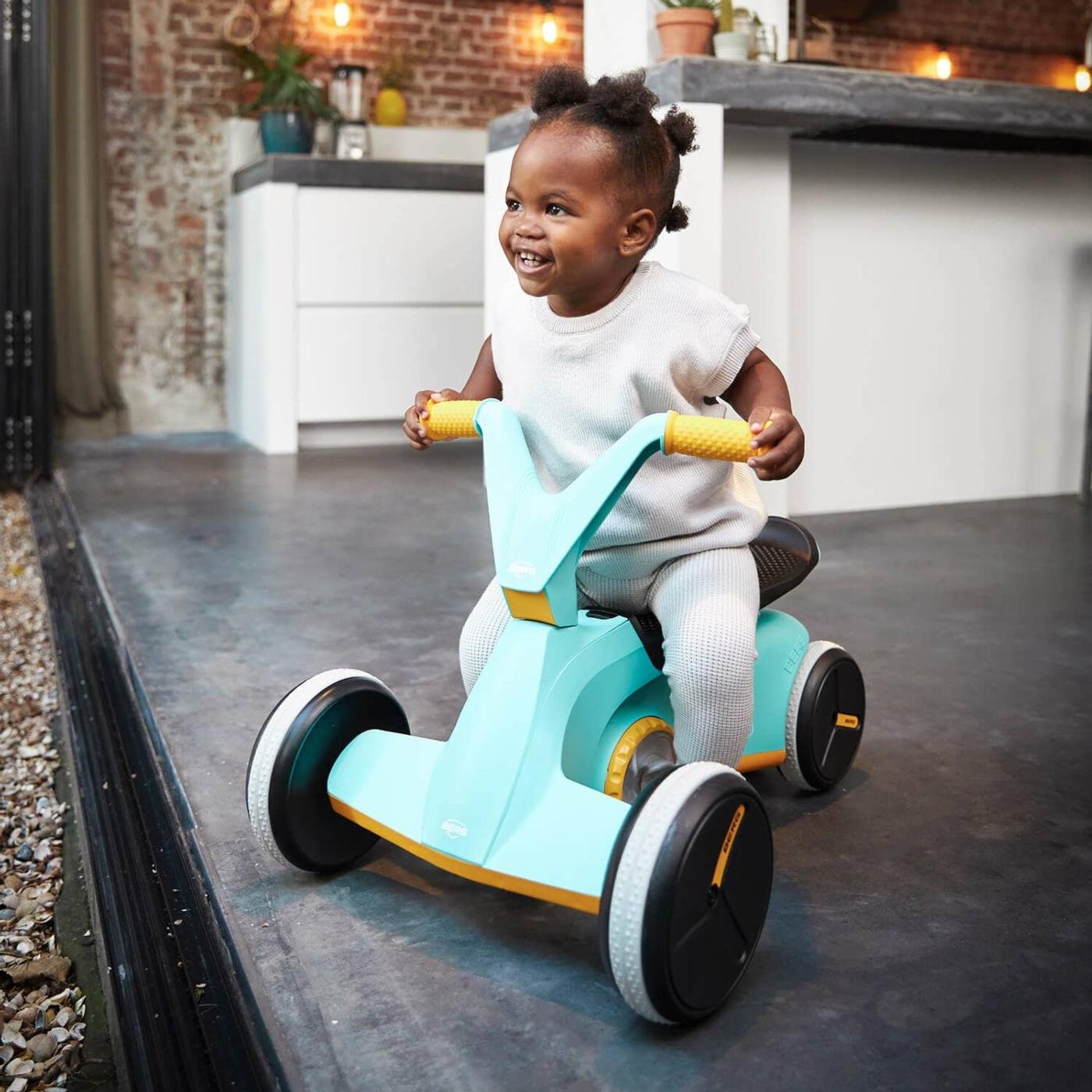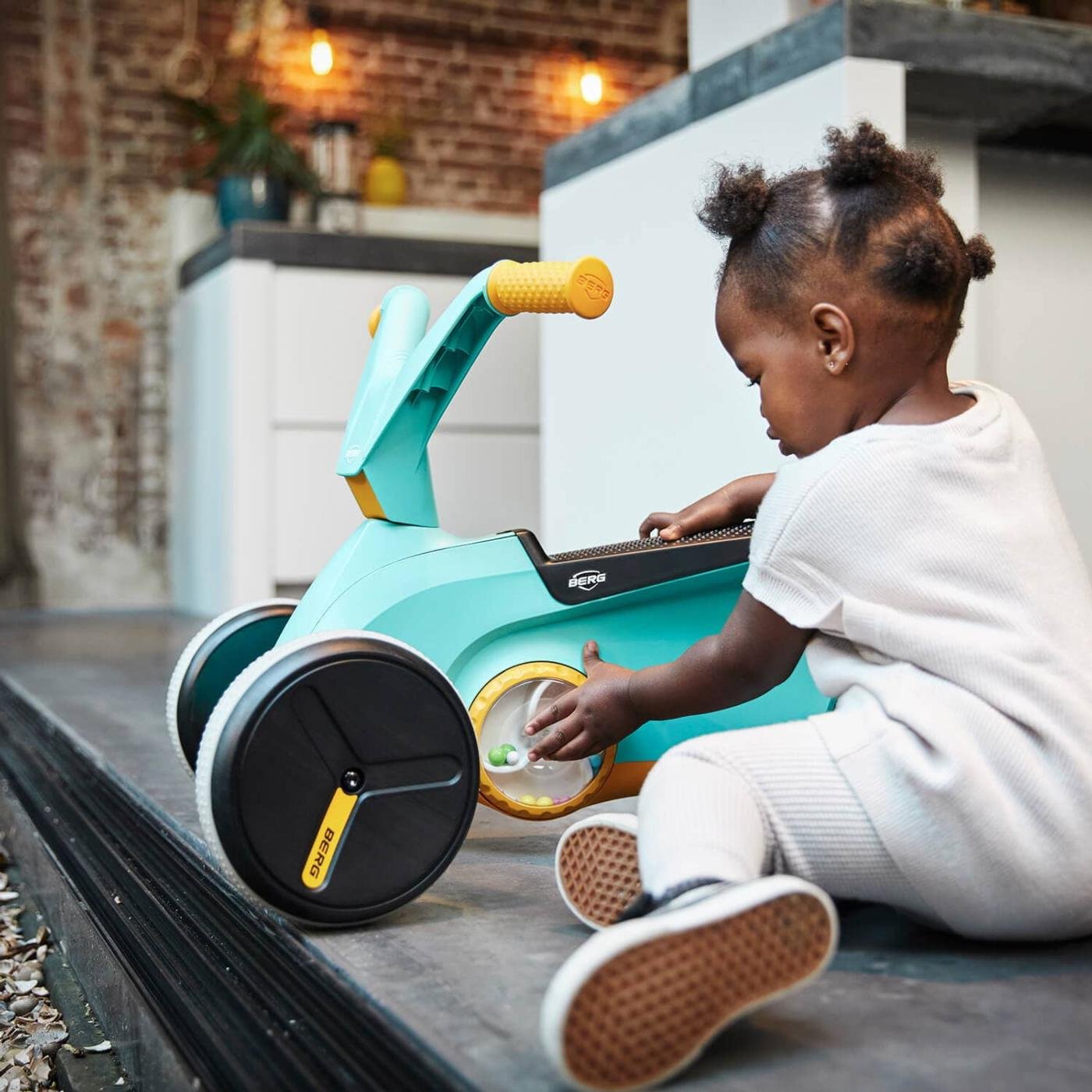 El BERG GO Twirl Turquoise es bueno para el desarrollo físico y cognitivo de tu hijo y además es un juguete divertidísimo. Las 4 ruedas son silenciosas y aportan seguridad y estabilidad en la conducción de una bici sin pedales. El BERG GO Twirl se puede usar tanto dentro como fuera de casa.