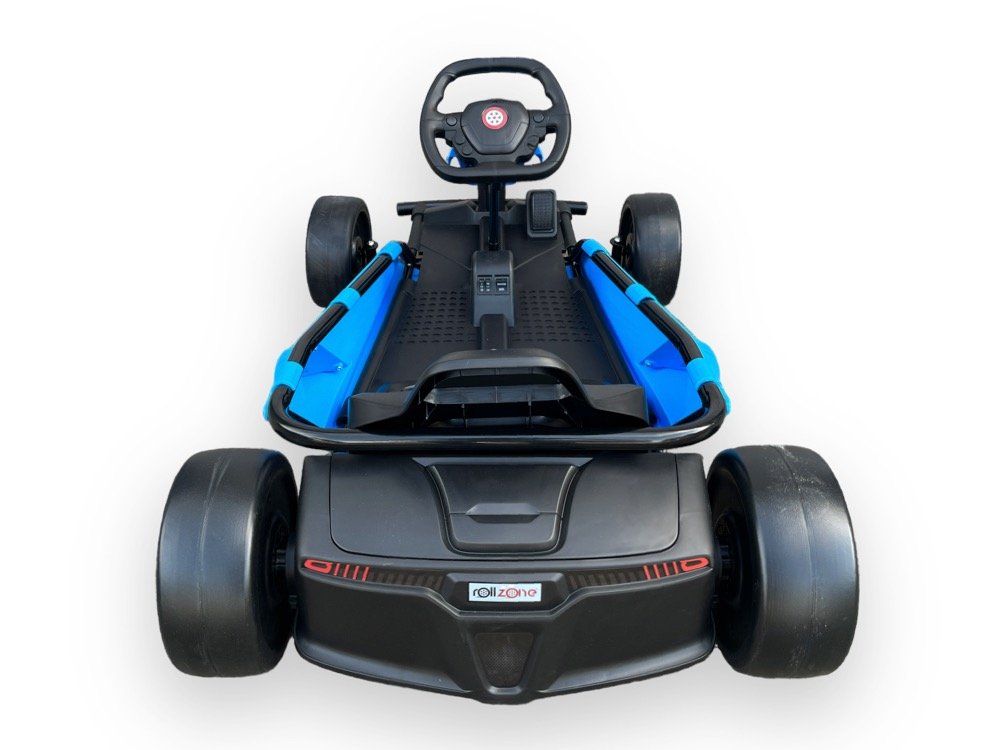 Conduciendo: 2 velocidades regulables hasta 18 km por hora, avanza y retrocede con ‘soft start’, se acciona con el pedal del acelerador y con el mando a distancia, freno electrónico al soltar el pedal del acelerador