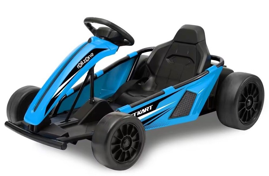 Informe detallado: Neumáticos delanteros rellenos de goma, cinturón de seguridad, plataforma de pies antideslizante, botón de música en el volante