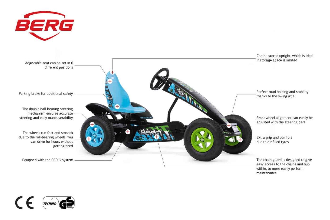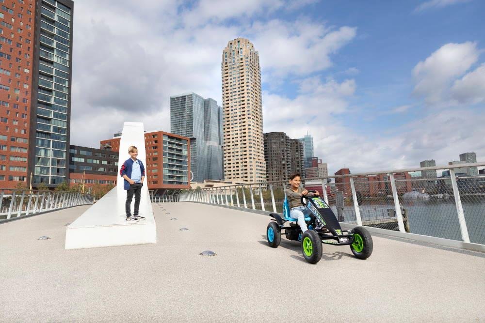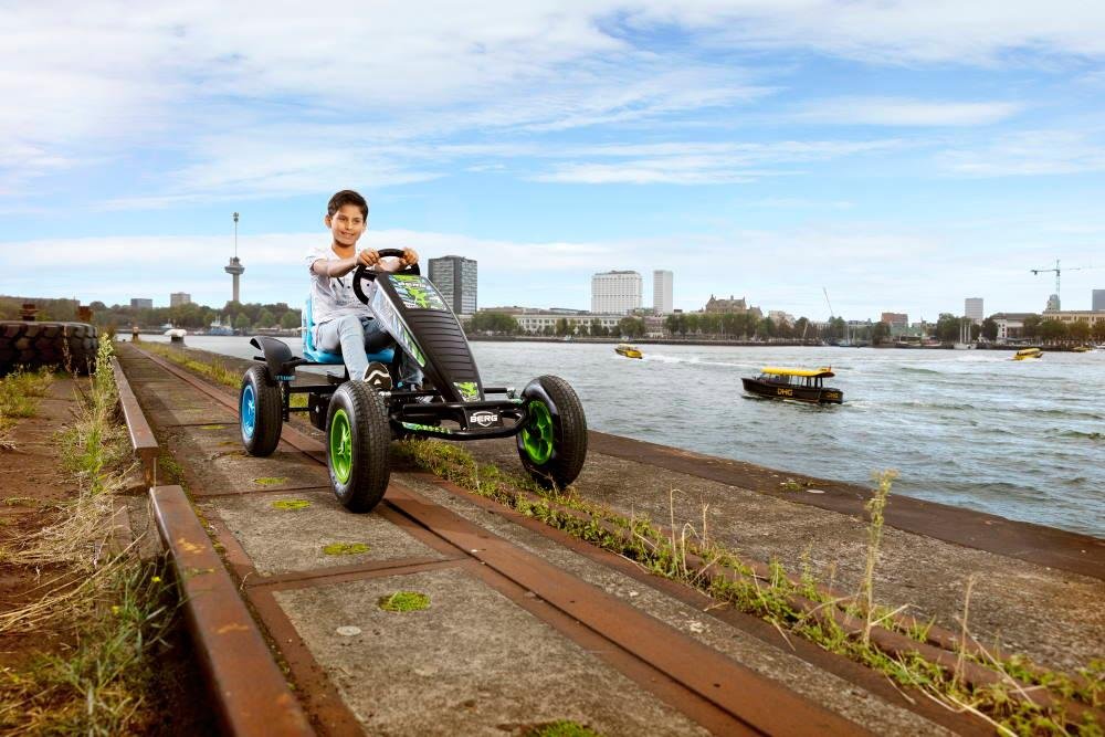 Si lo que están buscando es circular por los caminos que van por el bosque y el campo para descubrir tierras inexploradas. Conviértete en un explorador con el kart de pedales BERG X-ite BFR-3. Gracias a sus ruedas con neumáticos todo terreno, combinado con el eje balanceado les da un agarre óptimo en los terrenos difíciles. El coche de pedales BERG X-ite tiene el sistema de pedaleo BFR que permite frenar y parar fácilmente antes que un perro se cruce en el camino. El sistema BFR también permite ir marcha atrás cuando el sendero esté bloqueado por un tractor parado. Este modelo de kart a pedales tiene cambio de marchas de tres posiciones para ayudarte a subir por los caminos.