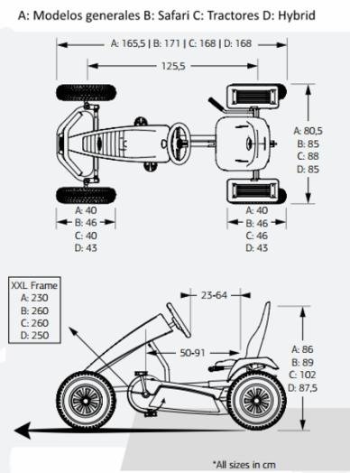 Las medidas del kart de pedales eléctrico BERG EXTRA SPORT E-BF son:
