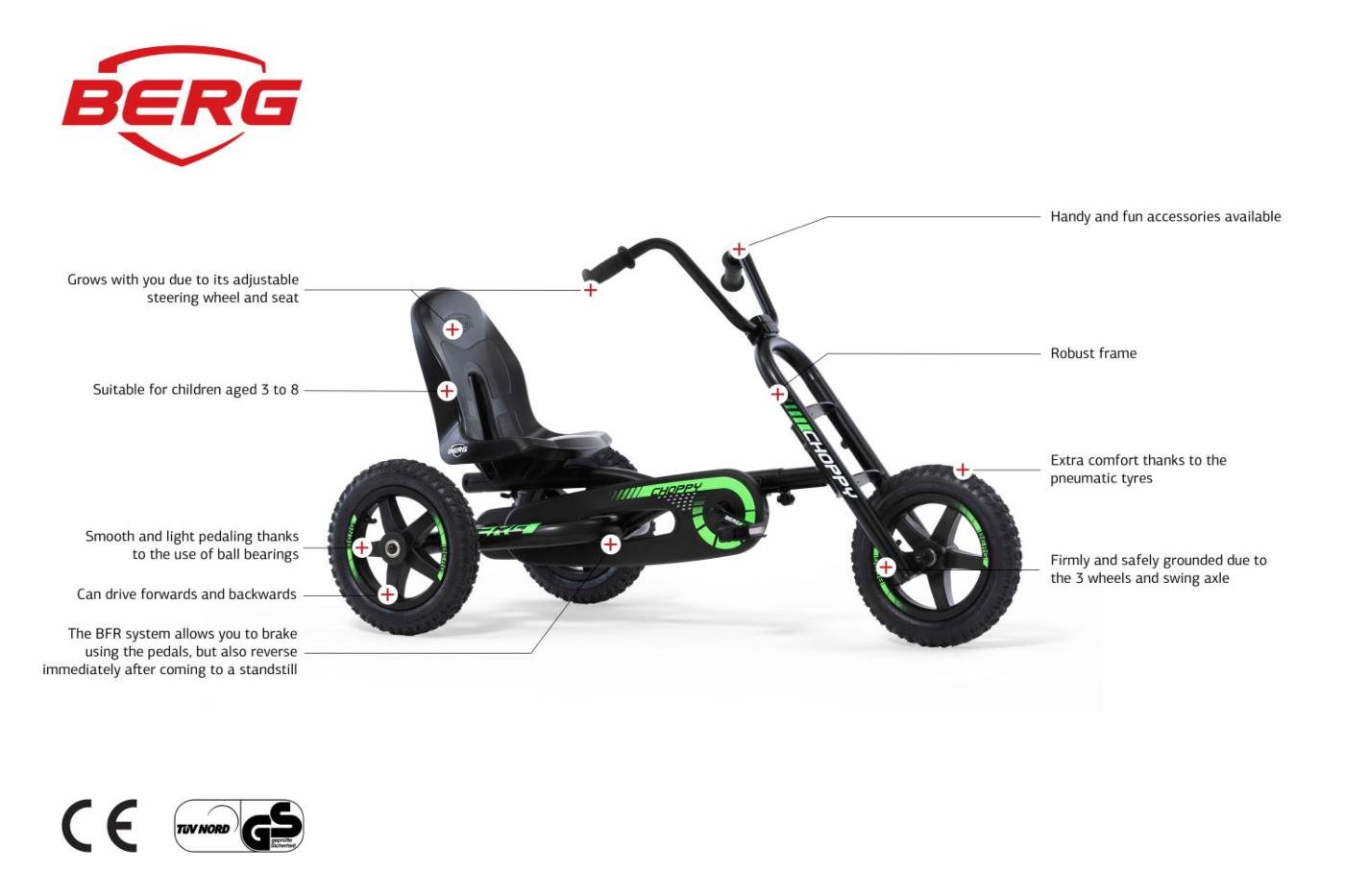 Apropiado para niños de 3 a 8 años. El triciclo BERG CHOPPY NEO tiene las siguientes características: