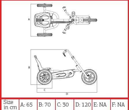 Medidas triciclo Berg Choppy NEO: 120 cm (largo)x 65 cm (ancho)x 70 cm (alto)