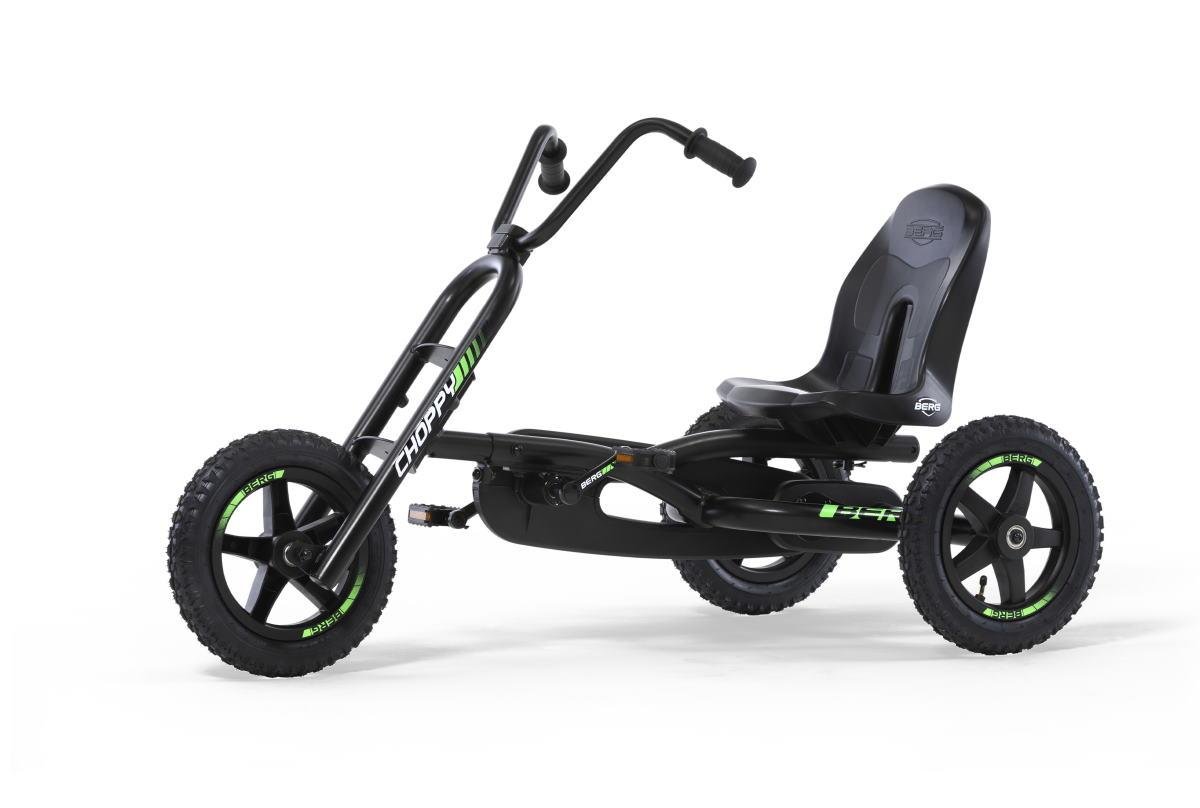 El triciclo a pedales BERG CHOPPY NEO tiene más la imagen de una moto de tres ruedas Chopper que de un triciclo infantil. El triciclo a pedales BERG Choppy Neo es un vehiculo fuerte y veloz para que los niños jueguen a hacer carreras o paseen por el parque saludando a todo los niños. El triciclo BERG CHOPPY NEO es ligero y compacto y se puede guardar fácilmente en posición vertical.