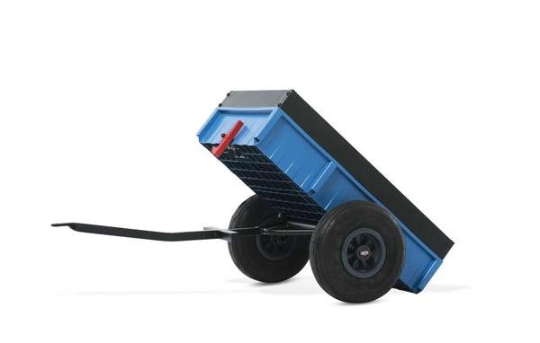Remolque de acero que tiene la función de volquete para descargar arena o juguetes al suelo más fácilmente.
