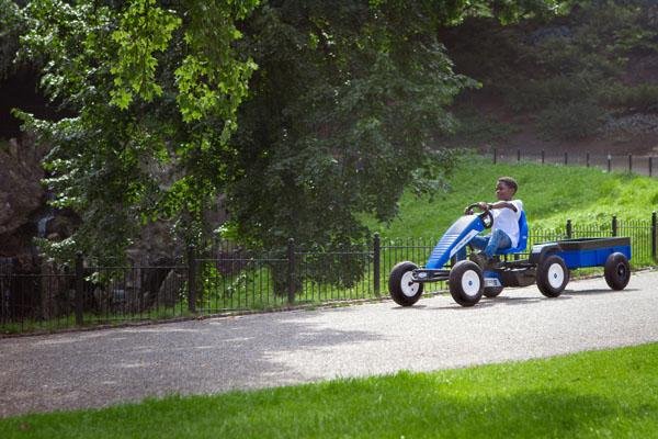 El remolque para karts de pedales BERG viene equipado con neumáticos muy sólidos para una conducción suave, confortable y tranquila.