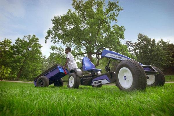 El remolque de acero es compatible con los karts de pedales grandes de BERG TOYS es decir con los modelos que son para los niños y niñas de más de 5 años en adelante.