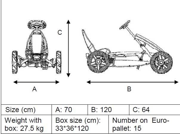- Medidas kart: 124 cm (largo)x 70 cm (ancho) x 64 cm (alto)