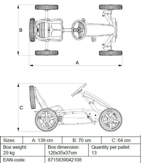 Medidas kart: 145 cm (largo)x 70 cm (ancho) x 64 cm (alto)