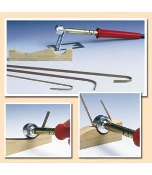 Facilita enormemente la complicada labor del forrado de casco en las maquetas de barcos . —- Se aplica una vez mojada la traca o liston de forro a colocar , dando por calor la forma deseada , ayudandonos con la pieza de madera con diferentes curvaturas . — Funciona a 220 v.
