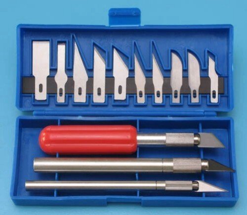 Práctico set con 3 mangos y 13 cuchillas intercambiables.