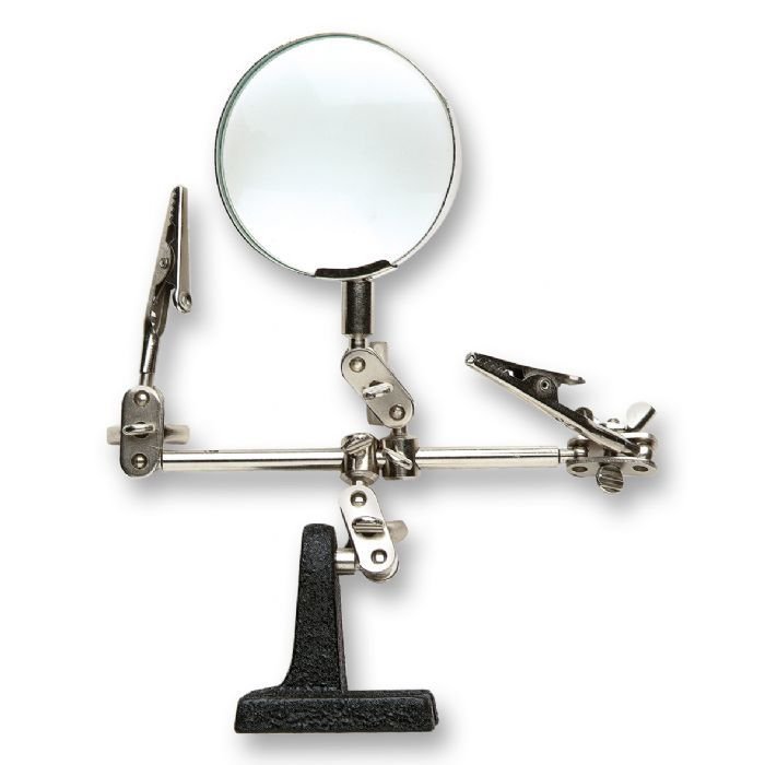 Brazo articulado con lupa para trabajos de precisión en modelismo y electrónica.