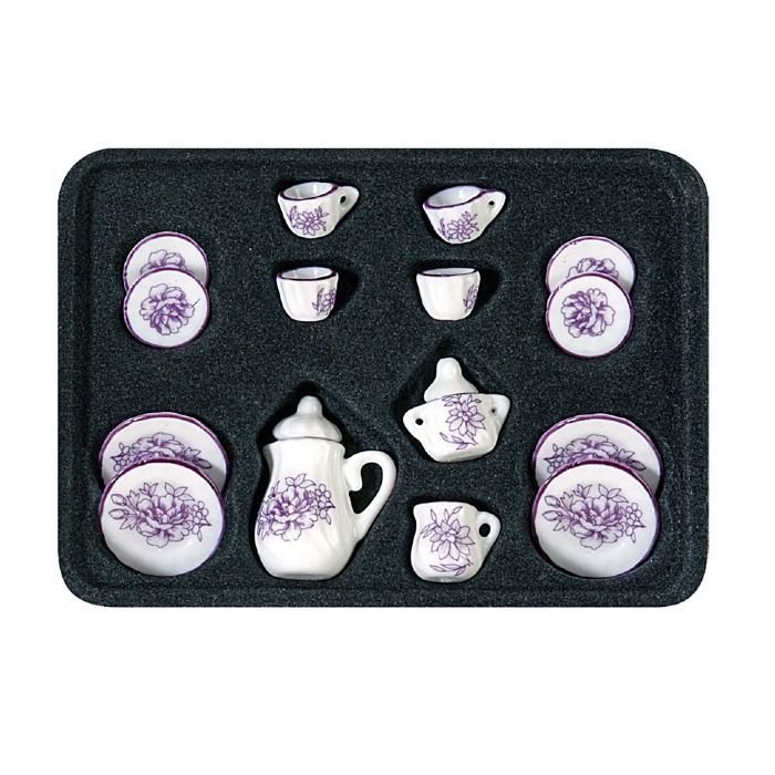 ARTESANÍA LATINA 12685. VAJILLA PORCELANA CARTUJA VIOLETA PARA CASAS DE MUÑECAS