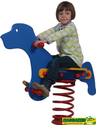 Balancín perrito con muelle de espiral y figura en forma de poni de polietileno macizo de 19 mm. Un balancín de muelle en forma de perrito de color azul, fuerte, bonito y seguro.