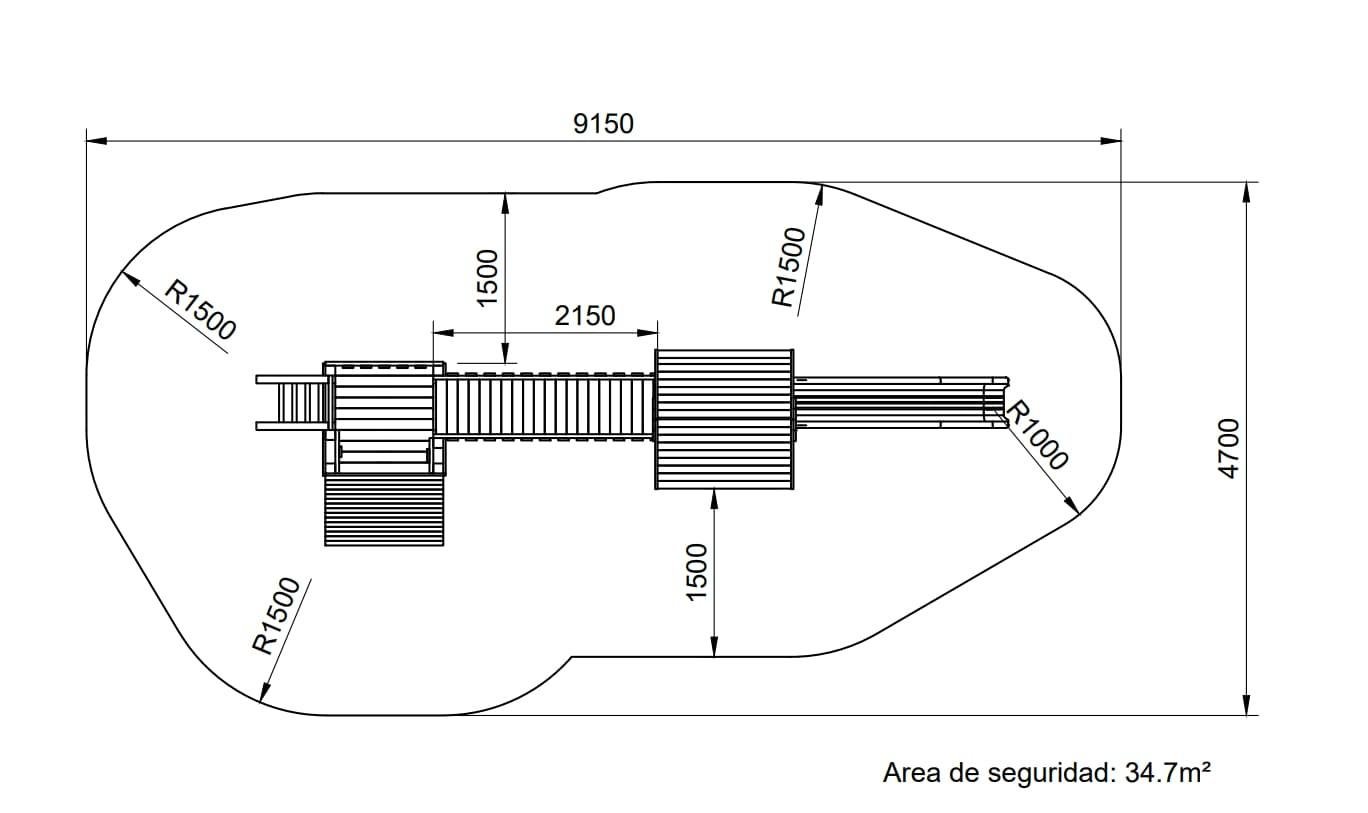 Las medidas del área de seguridad son 9,15 m x 4,7 m