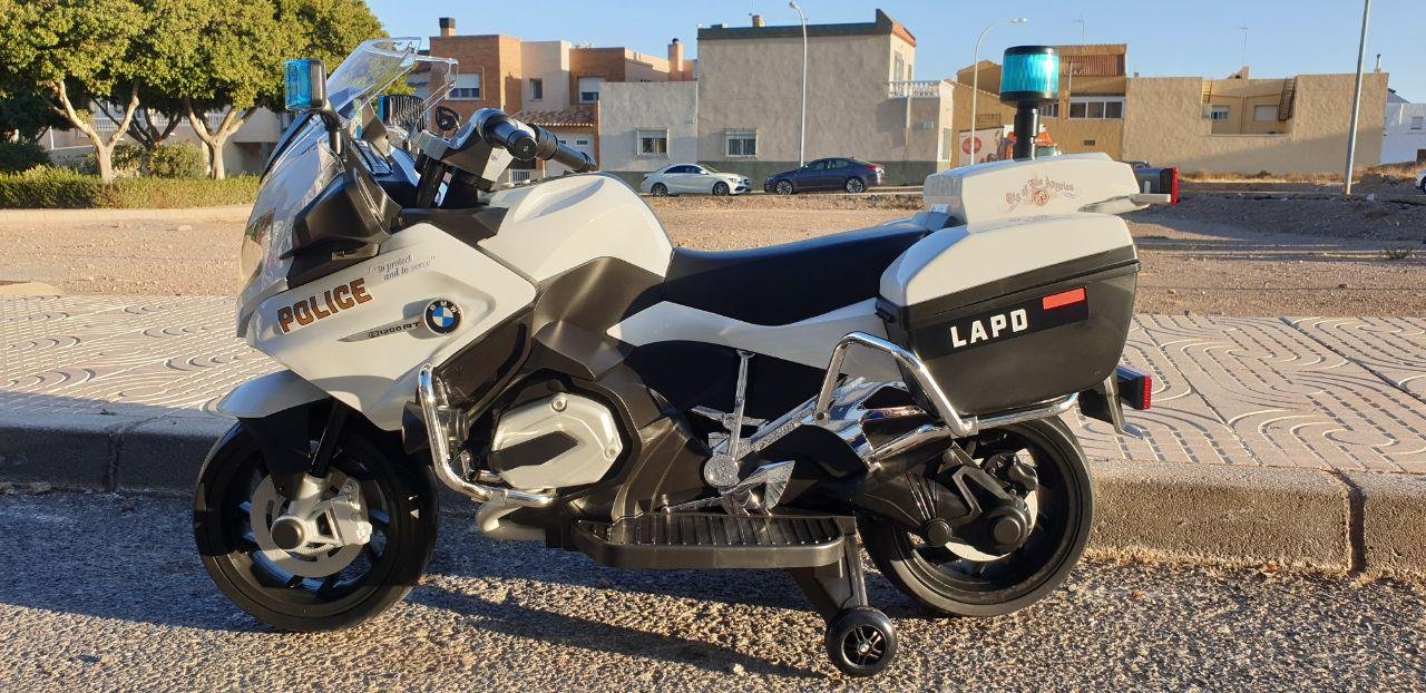 Moto eléctrica 12v infantil policía, réplica de  la moto BMW R1200.