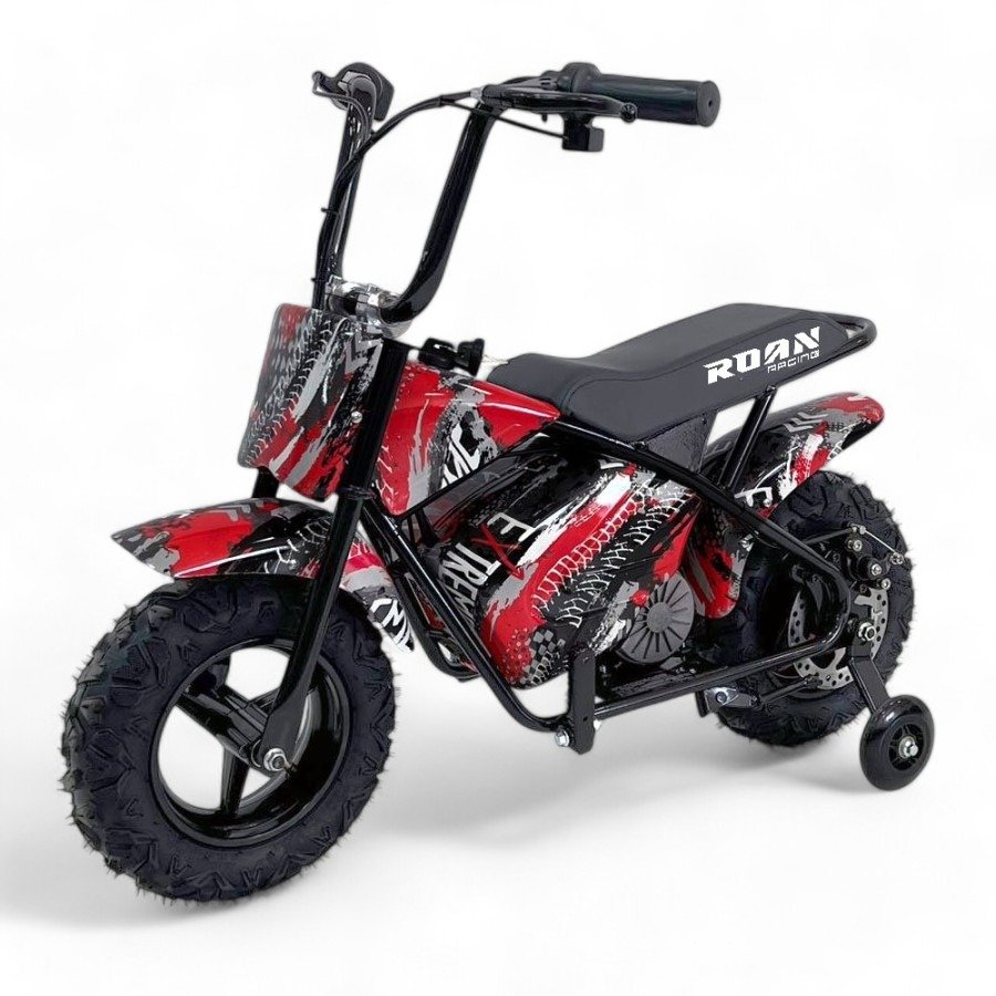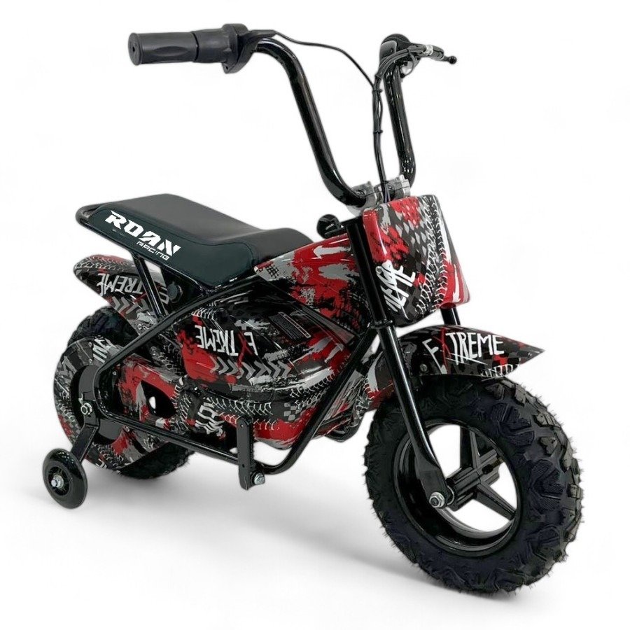 VENTA MINIMOTO INFANTIL 250W ROAN, RUEDINES Y LIMITADOR VELOCIDAD, ROJA ESTAMPADA – INDA928-RO-1925__EST