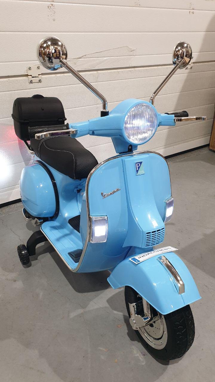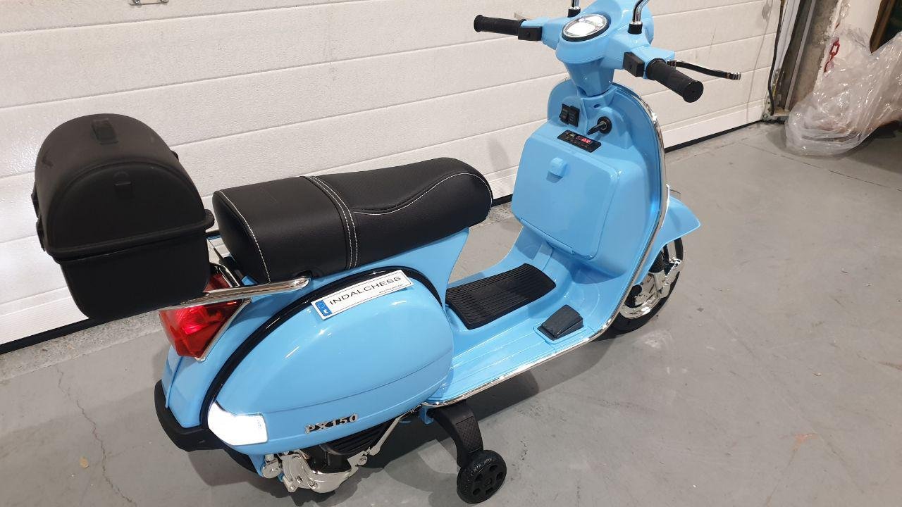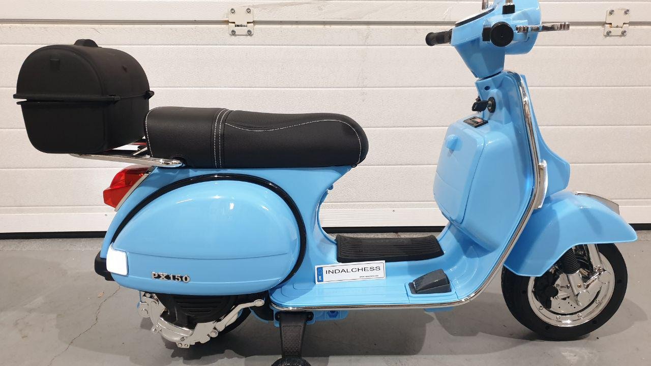 Moto con licencia oficial Piaggio Vespa PX150 de 12v color azul