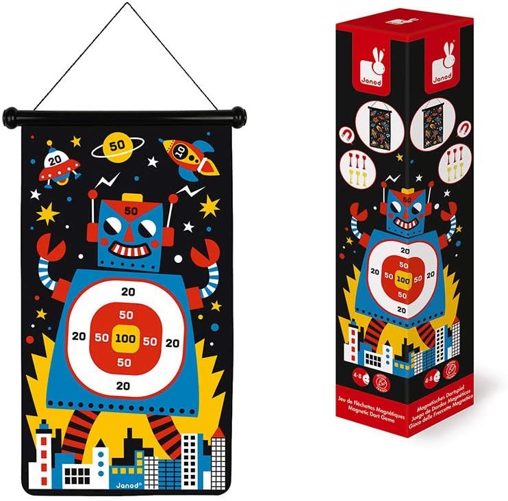 La diana se engancha fácilmente a la pared gracias a una cuerda, y los 6 dardos están imantados para mayor seguridad.