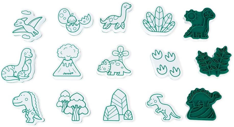 Janod 7796 – Caja de 15 Sellos de Espuma para niños – Dinusaurios