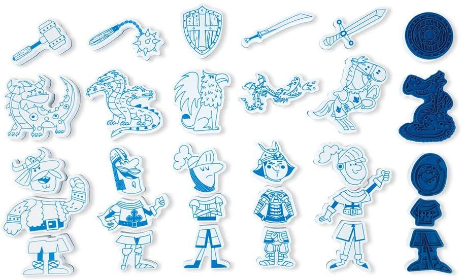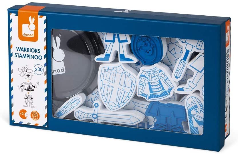 Janod 7798 – Stampinoo – Caja de 30 Sellos de Espuma para niños – Guerreros – Desde 3 años