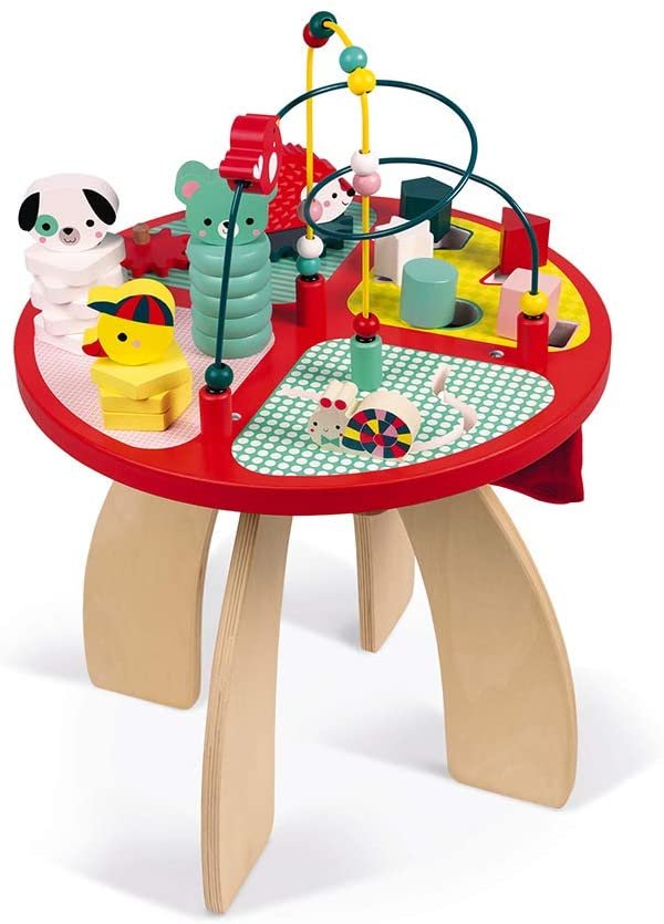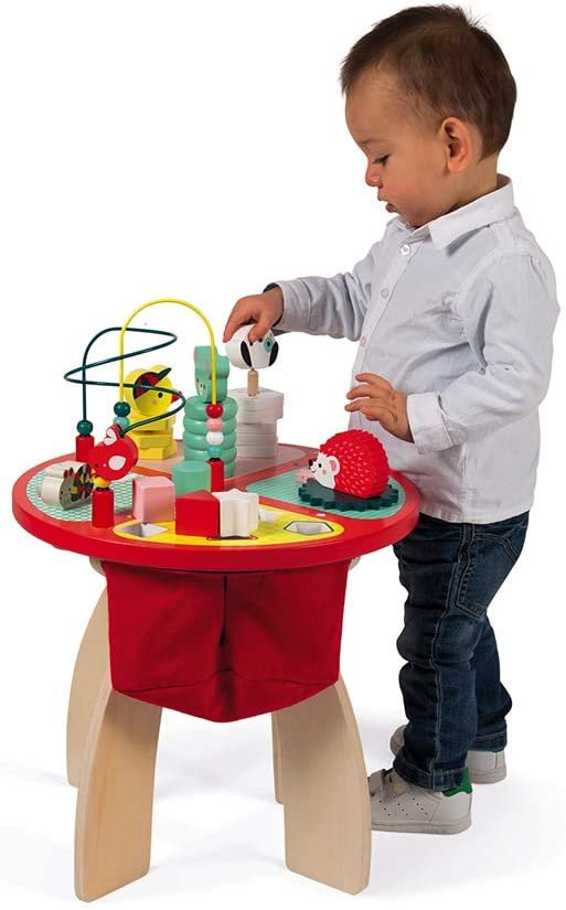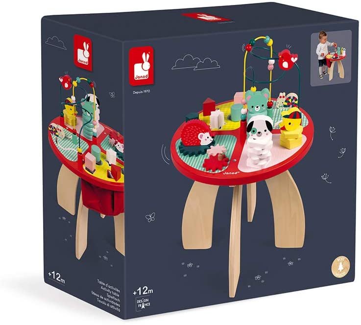 UNA GRAN ELECCIÓN PARA DESPERTAR INSTINTOS: Con sus colores vibrantes, formas atractivas y lindos animales, la mesa de actividades Janod es el centro de atención! Juguetes para ensamblar, juegos de equilibrio, formas para incrustar o apilar, los tipos de manipulaciones son variados y diseñados para estimular al bebé. En esta mesa, puedes tocar todo y aprender mientras te diviertes. Desde los 12 meses, ideal hasta los 3 años.